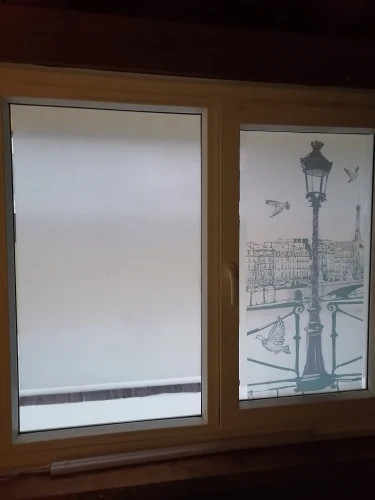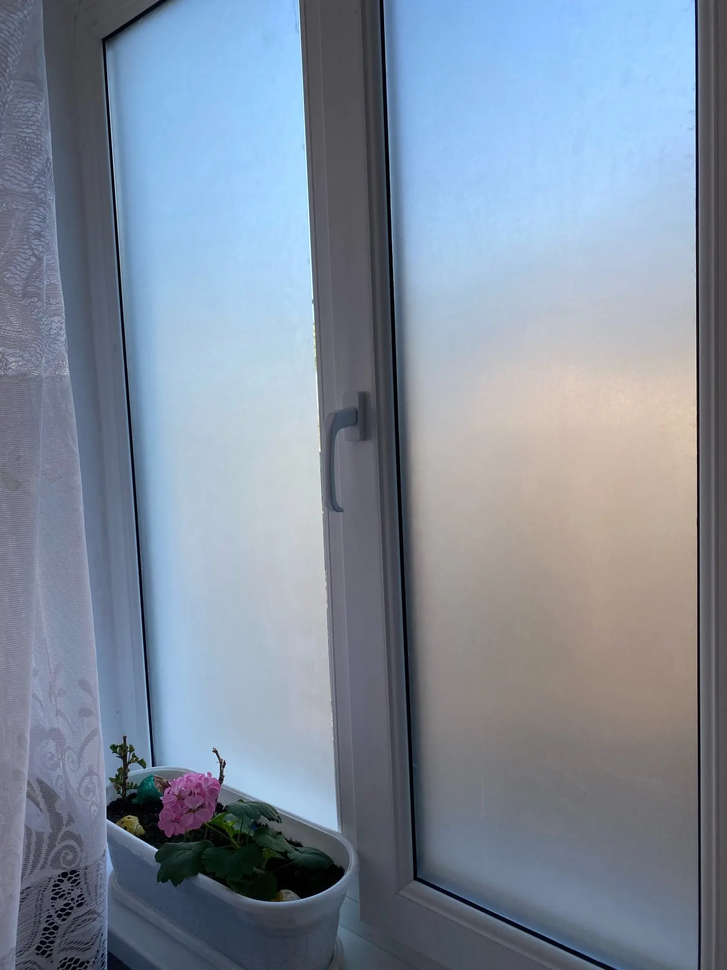 Посылка пришла очень быстро, качество хорошее, клеится хорошо (снимается защитный слой и прикладывается на предварительно смоченную мыльной водой поверхность стекла). Через пленку свет частично проходит, но что в комнате не видно.