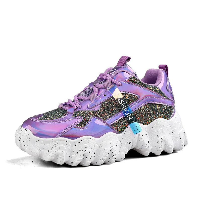 Кроссовки женские на платформе 4 см, Вулканизированная подошва, дышащие, блестящие, фиолетовые, размер 41, осень 2020