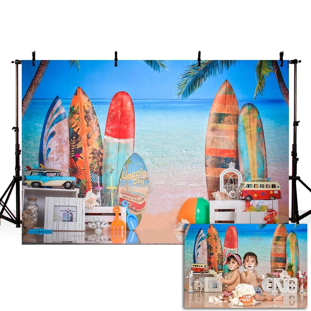 Фон Mehofond для летней фотосъемки Гавайская доска для серфинга море пляж голубое небо детский день рождения фотостудия фон для фотосъемки