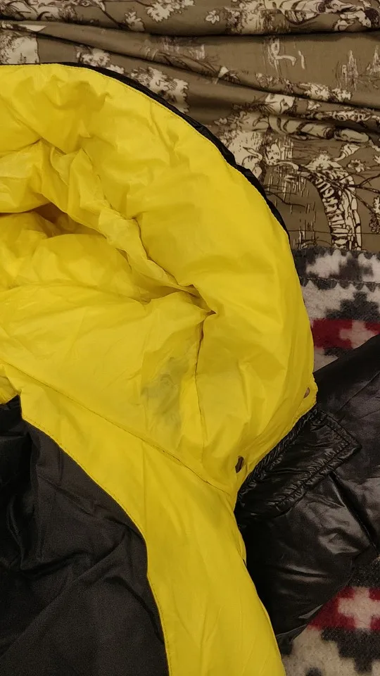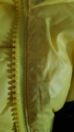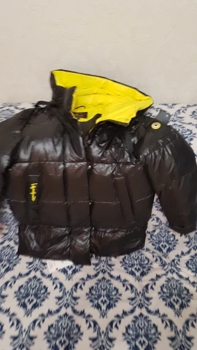 Качество куртки очень хорошее. А за 2300 руб. с учетом купонов, вообще огонь. На желтой планке, как и писали в предыдущих отзывах, есть отпечатки черных пятен не смотря на качественную упаковку(было проложено бумагой), надеюсь отстирается. Немного пожалела, что заказала размер побольше, думала мало будет. Швы не лысые, как у многих подобных курток, довольно плотно уложен наполнитель. В общем понравилась куртка. СДэК только подвел, долго доставляли, раньше быстро шло.