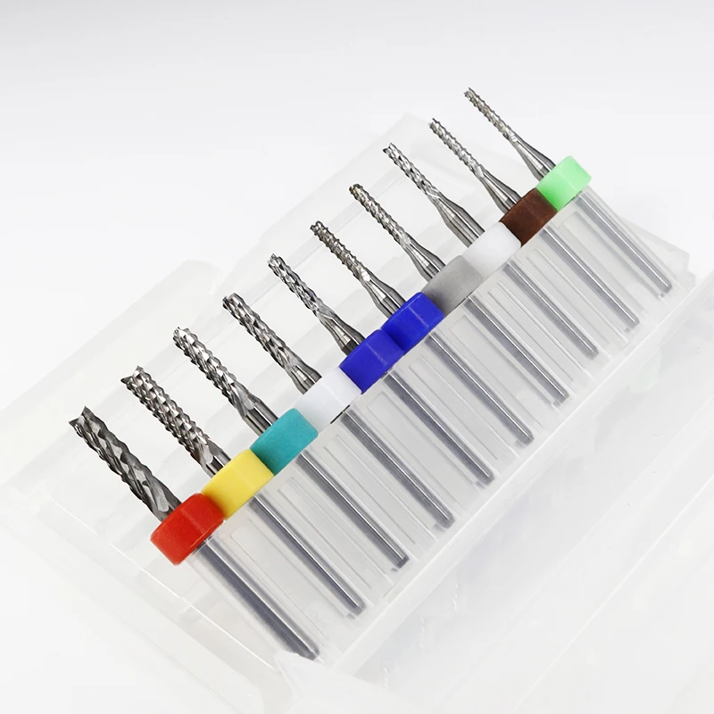 10 шт. PCB фреза 0,5/0,6/0,7/0,8/0,9/1,0/1,1/1,2/1,3/1,4/1,5/1,6/1,7/1,8/1,9/2,0/2,1/2,2/2,4/2,5 мм/3,0/3,175 мм хвостовик кукурузы фрезы карбида вольфрама мини ЧПУ гравировка бит концевые фрезы