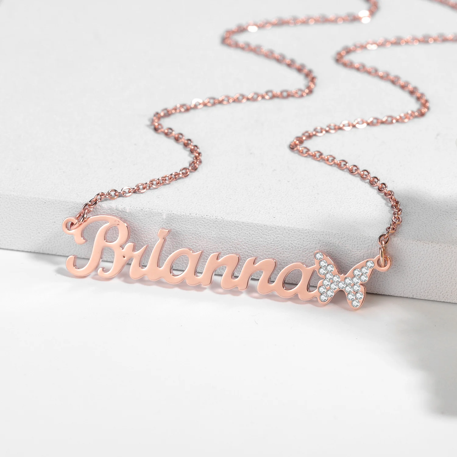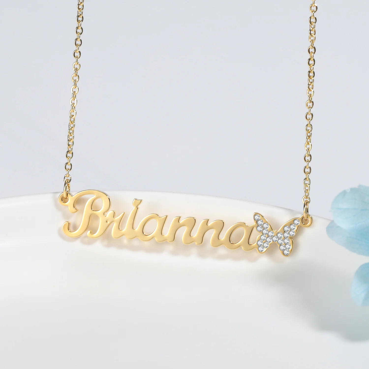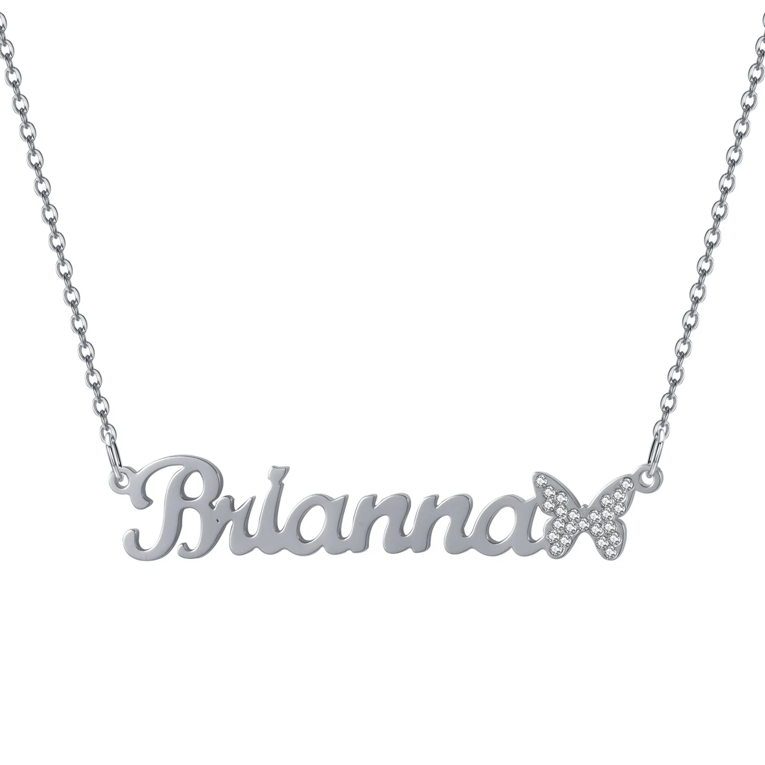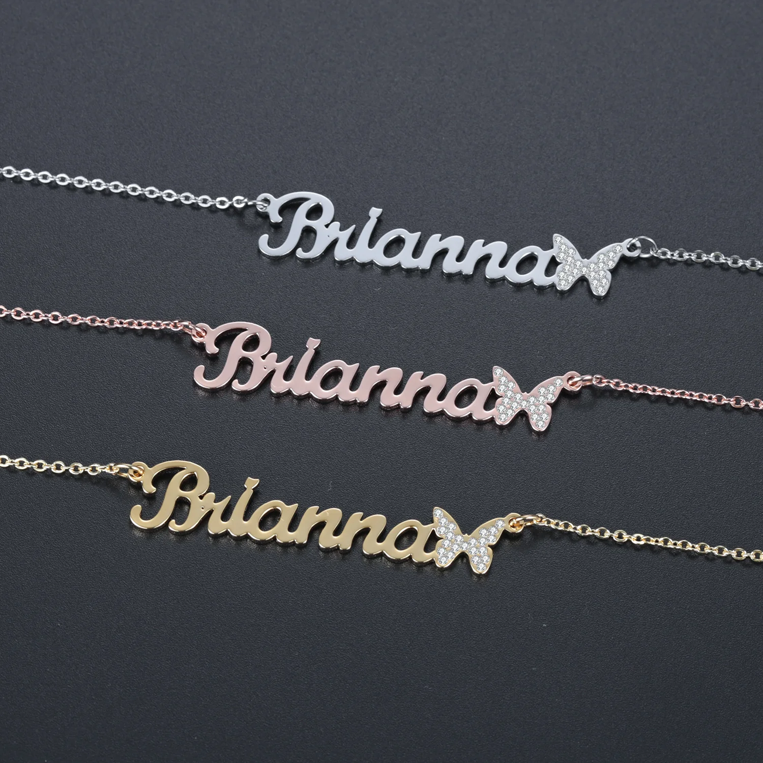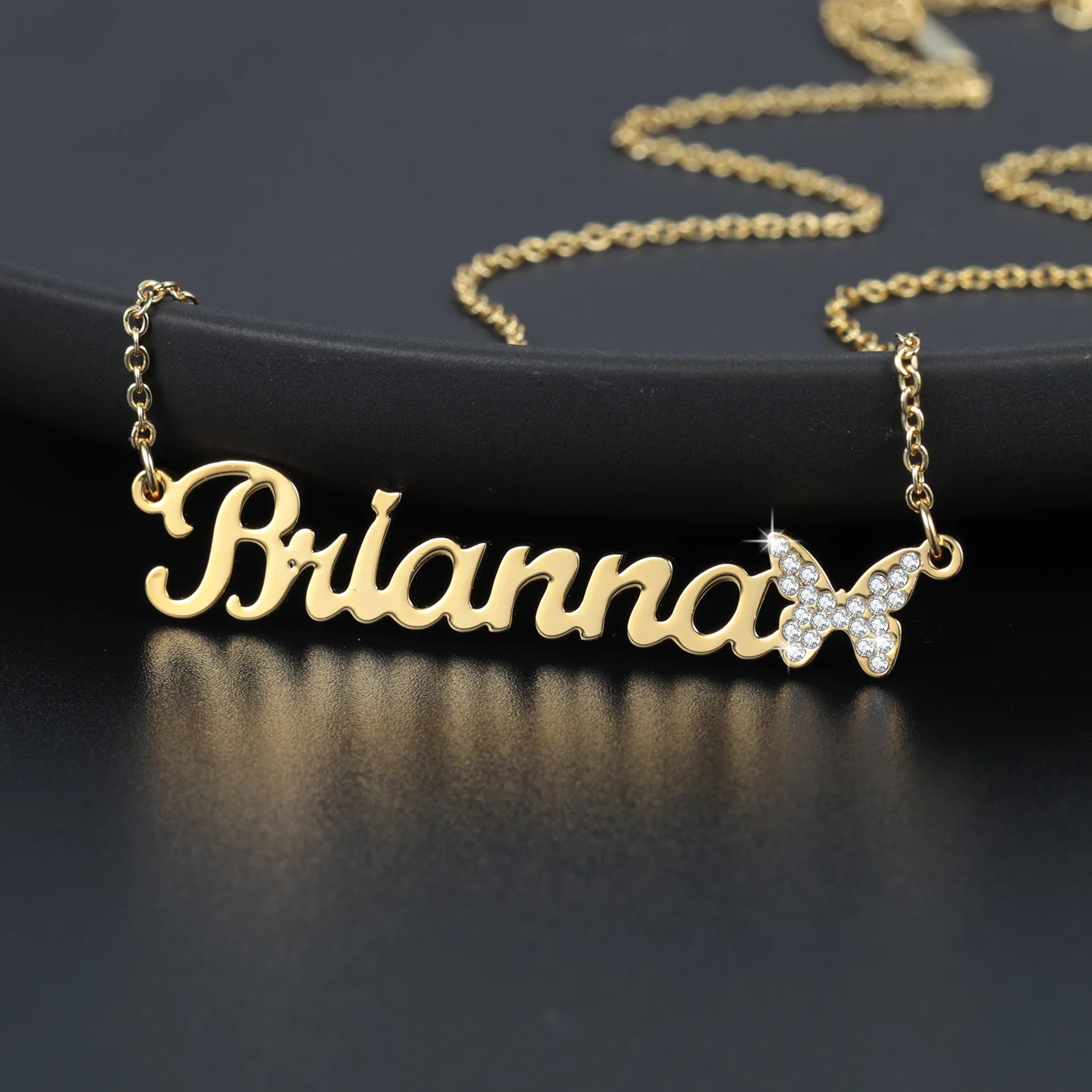 Ожерелья-бабочки со сверкающими деталями на заказ, кулон с именной табличкой, цепочка из нержавеющей стали, кулон, ожерелье, ювелирные изделия
