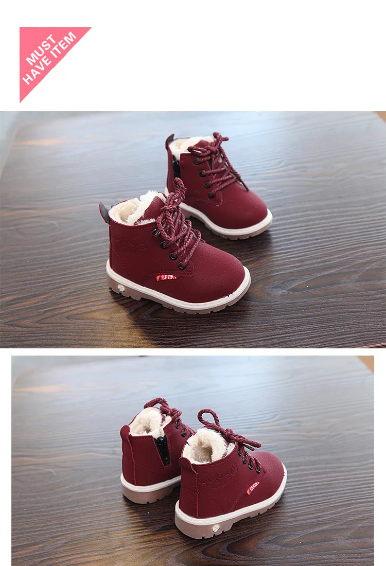 Осенне-зимние модные теплые плюшевые ботинки; Обувь для маленьких мальчиков и девочек; Новинка 2022 года; Детские ботинки на плоской подошве; Цвет черный, коричневый, красный; От 1 до 6 лет