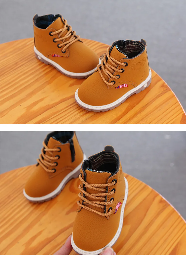 Осенне-зимние модные теплые плюшевые ботинки, обувь для маленьких мальчиков и девочек, новинка 2022, детские черные, коричневые, красные ботинки на плоской подошве для детей