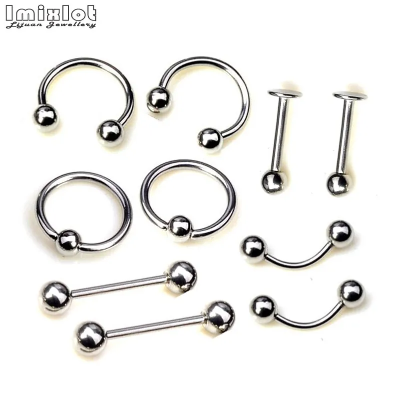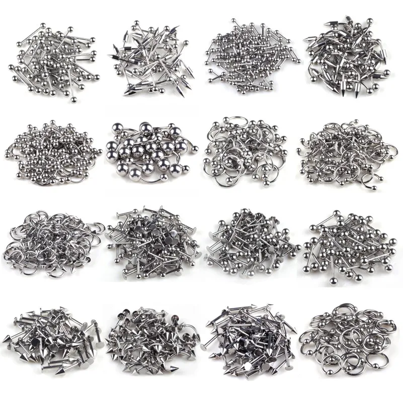 859095 шт. смешанные стилей, из нержавеющей стали штанги для бровей для пупка или носа язык губная серьга, кольцо козелка уха штанги ювелирные изделия для пирсинга тела