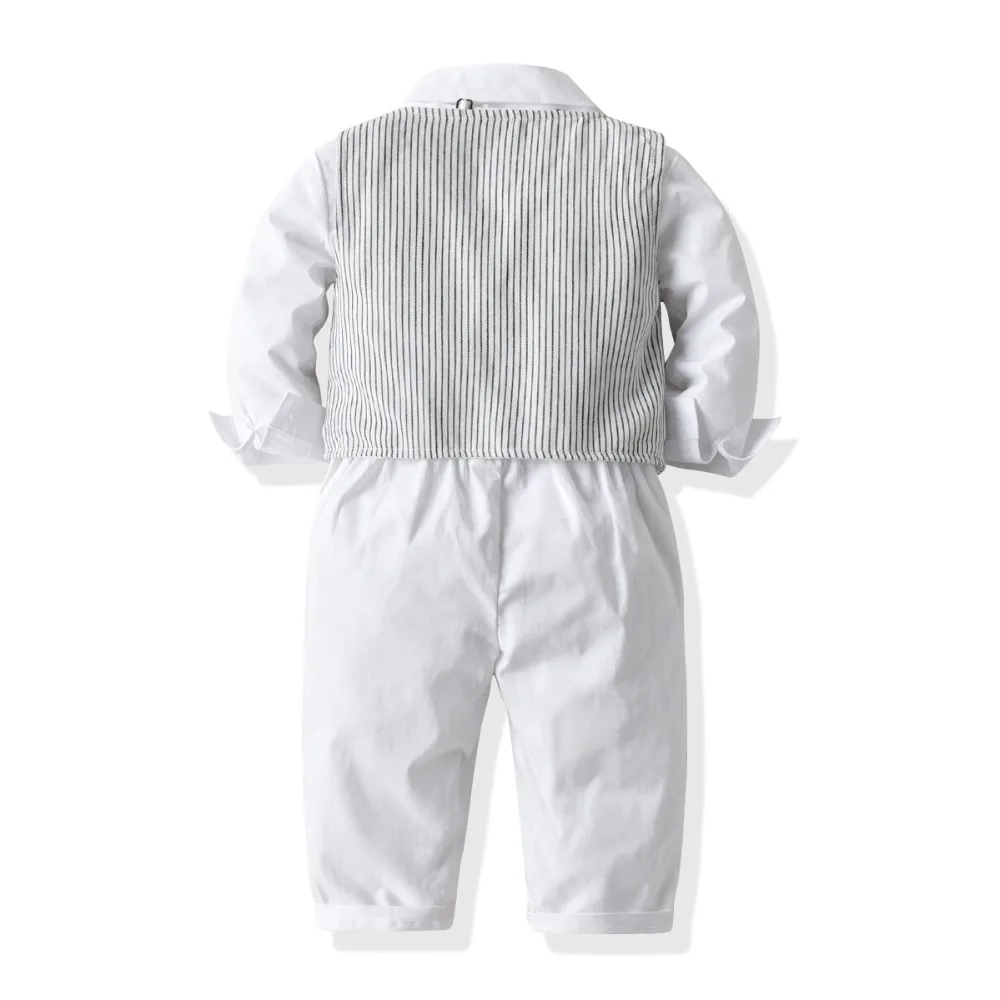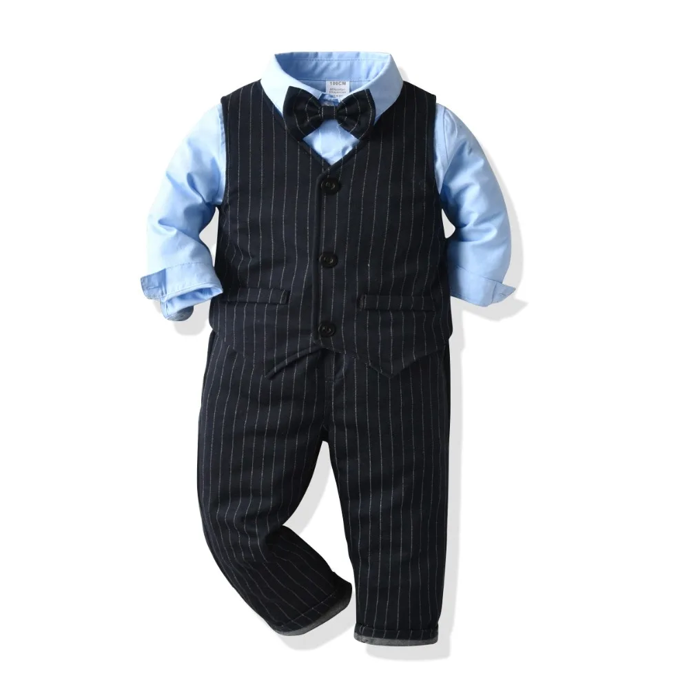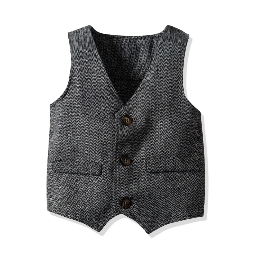 Одежда джентльмена для мальчиков Модный осенний костюм для малышей Детские костюмы в британском стиле рубашка с длинными рукавами для свадебной вечеринки костюм с жилетом и штанами
