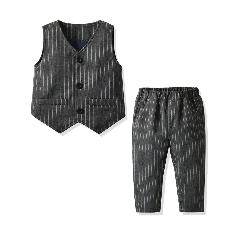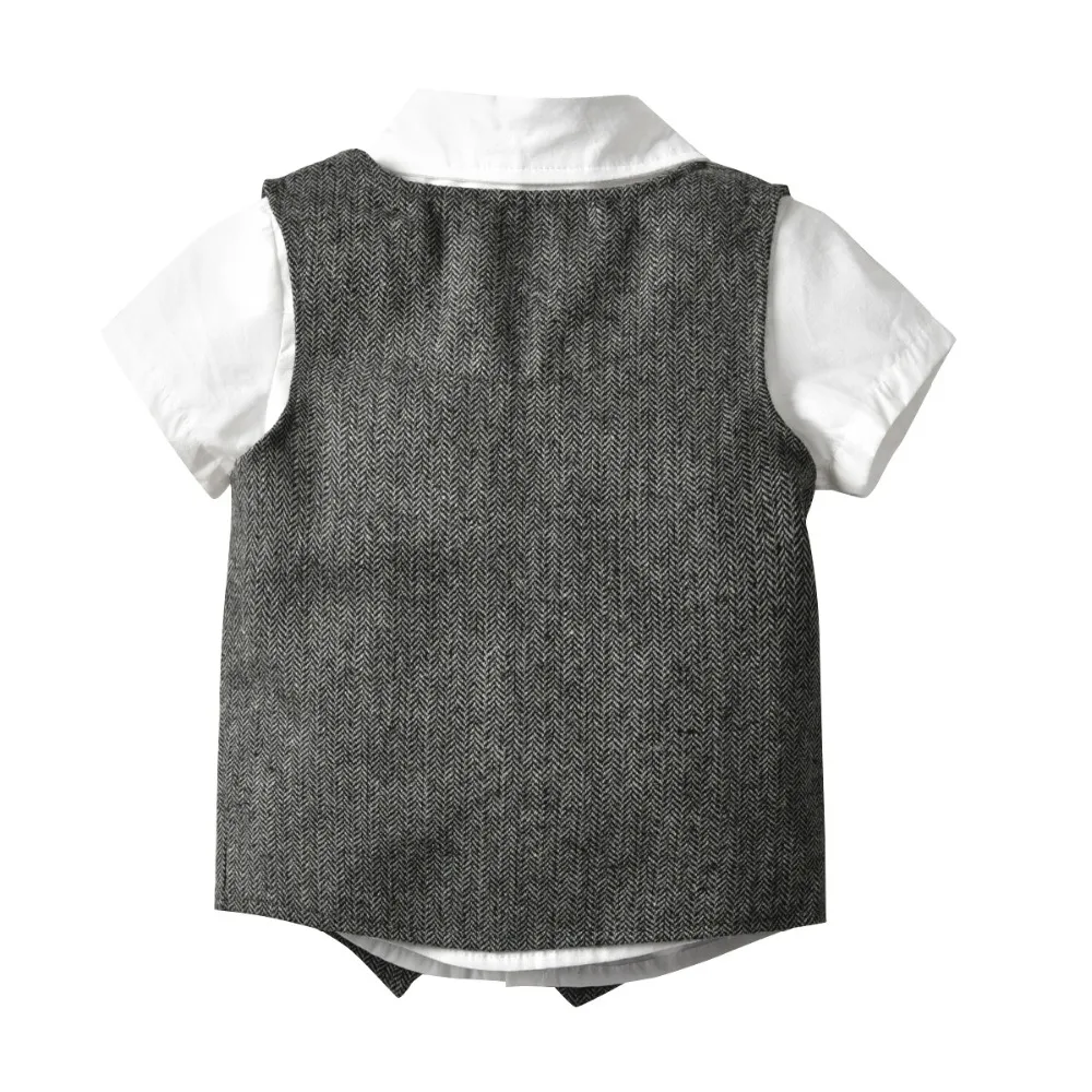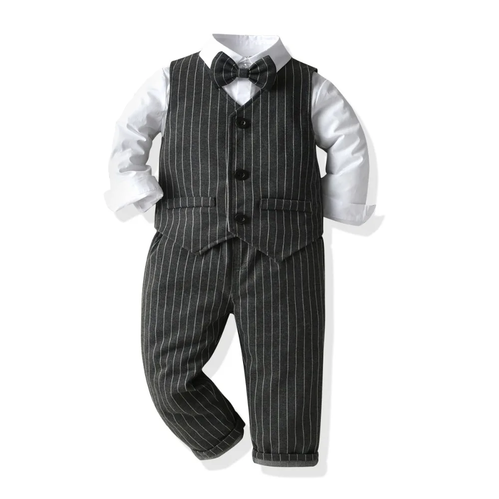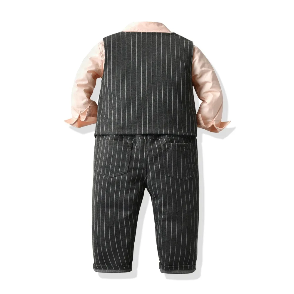 Одежда джентльмена для мальчиков Модный осенний костюм для малышей Детские костюмы в британском стиле рубашка с длинными рукавами для свадебной вечеринки костюм с жилетом и штанами