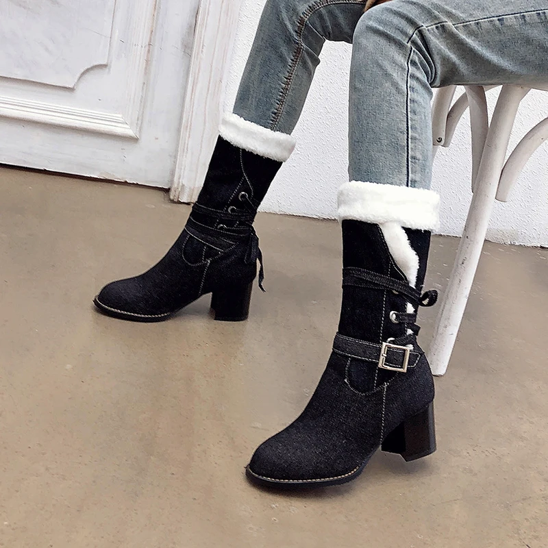 Модные женские зимние сапоги, австралийские классические высококачественные джинсовые теплые женские зимние сапоги, женские сапоги больших размеров 34-48, Прямая поставка