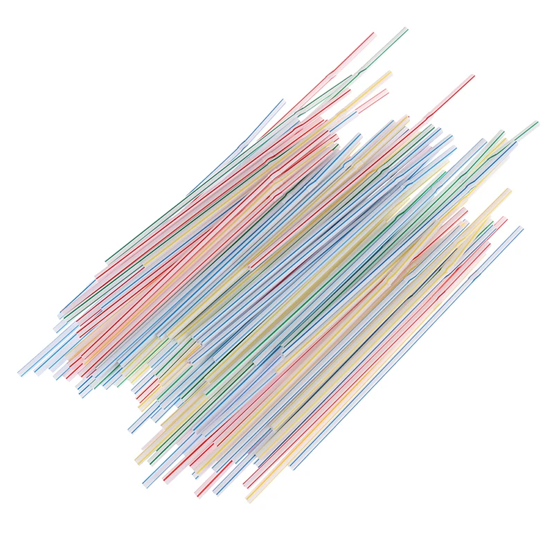 Соломинки одноразовые гибкие пластиковые в полоску, разноцветные радужные соломинки для питья, аксессуары для бара, 100 шт.пакет