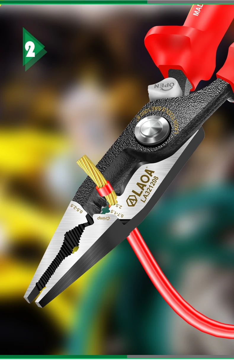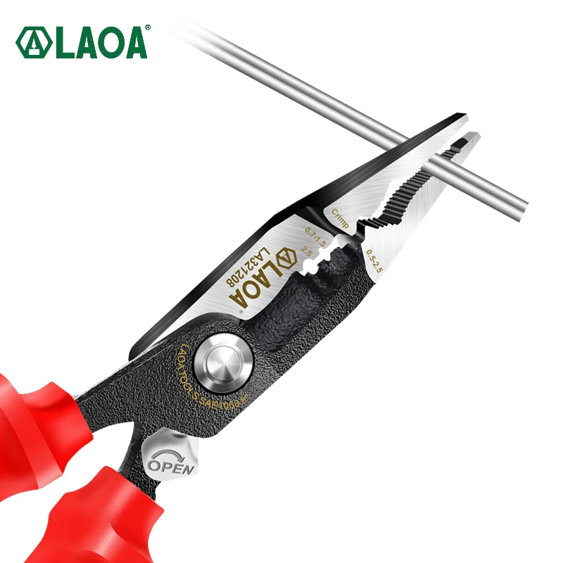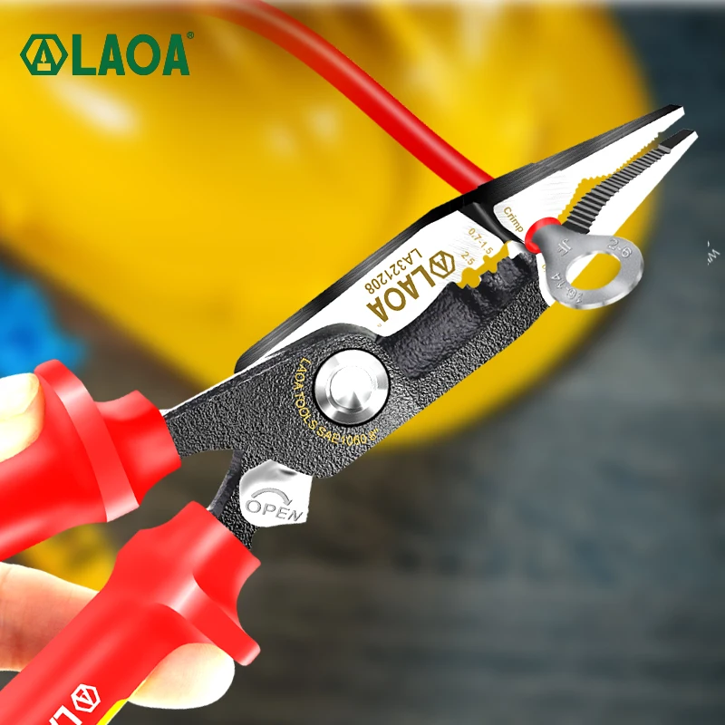 Плоскогубцы LAOA VDE с длинным носом, многофункциональные плоскогубцы с высоким напряжением и сопротивлением 1000 В для резки изолированных кабелей, кусачки для зачистки проводов