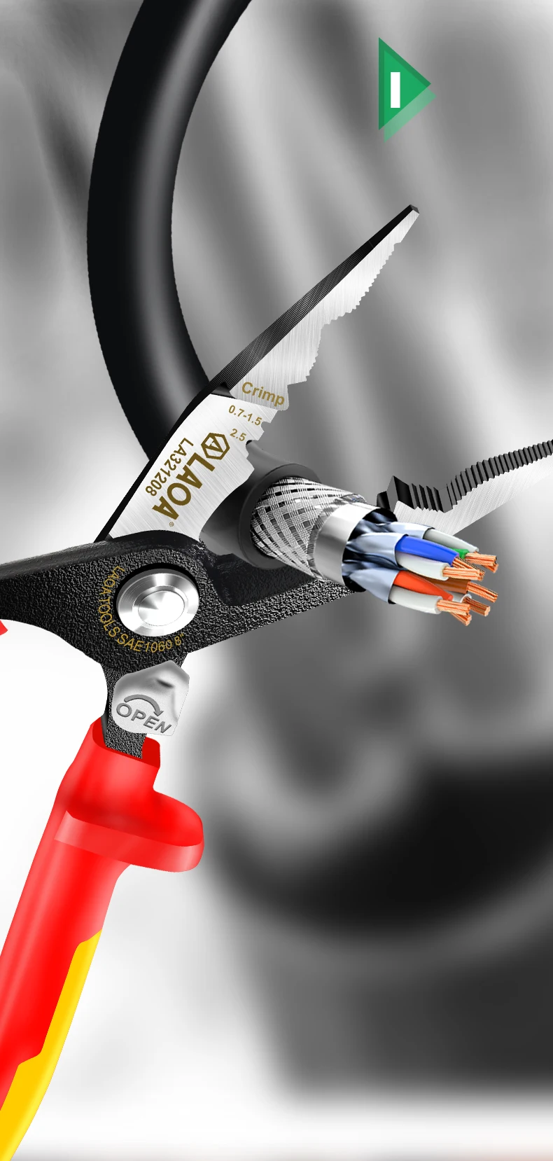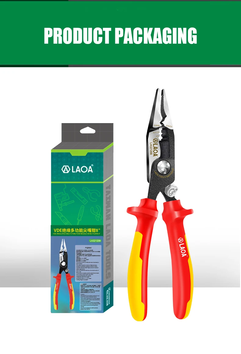 LAOA VDE плоскогубцы с длинным носом многофункциональные Высокое напряжение сопротивление 1000 В изолированные Кабельные режущие плоскогубцы резец проводов стрипперы