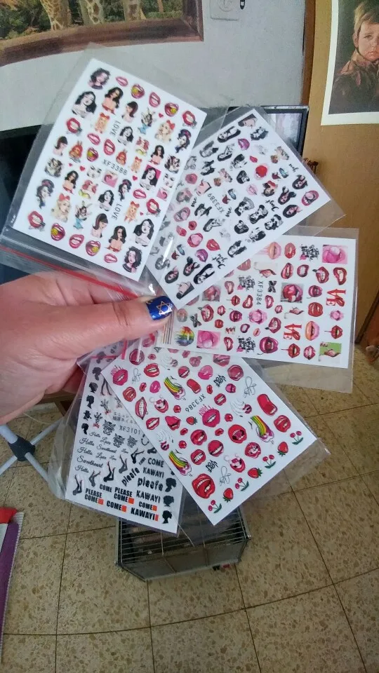 товар пришел быстро, наклейки нравятся,но от основной части отходят не полностью,не очень хорошо ложатся на ногти,