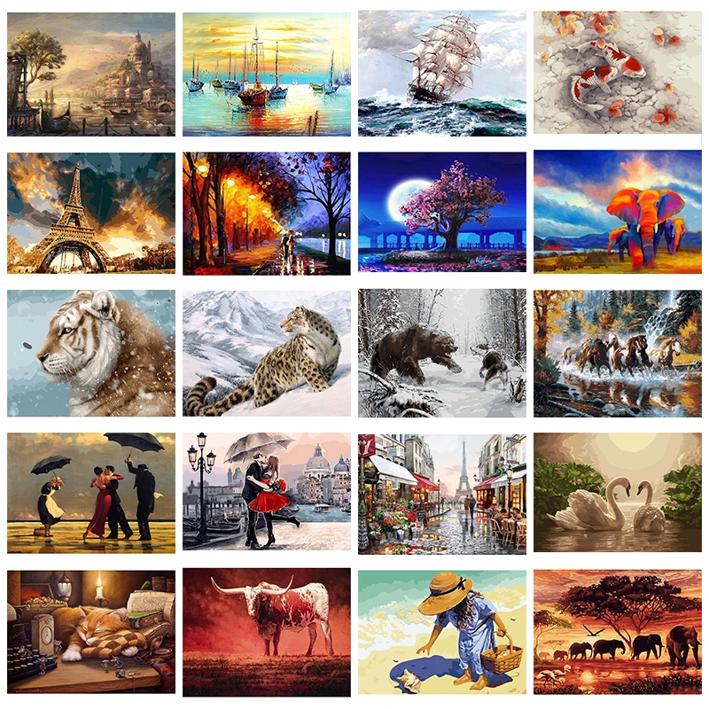 DIY Краски ing по номерам комплект с изображениями цветов и животны...