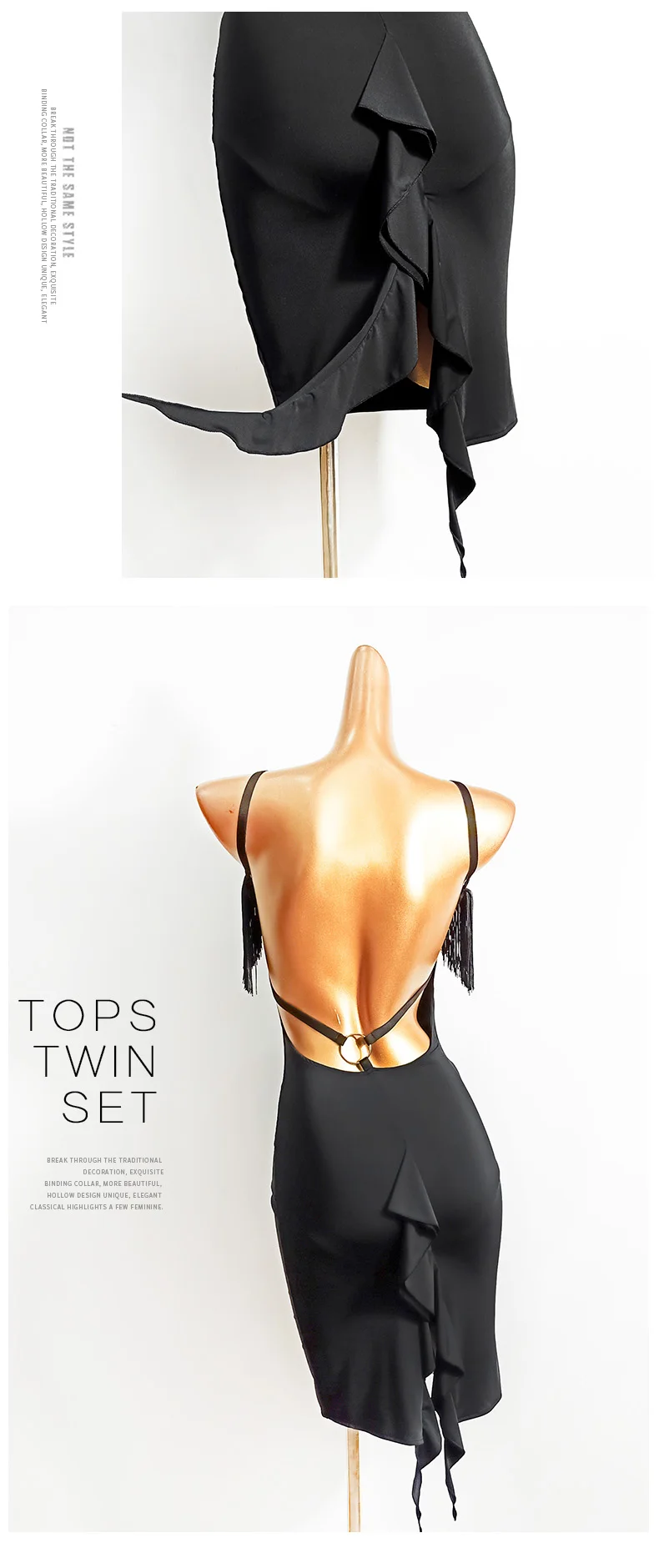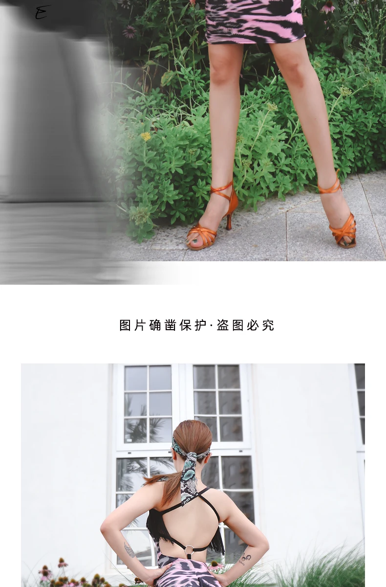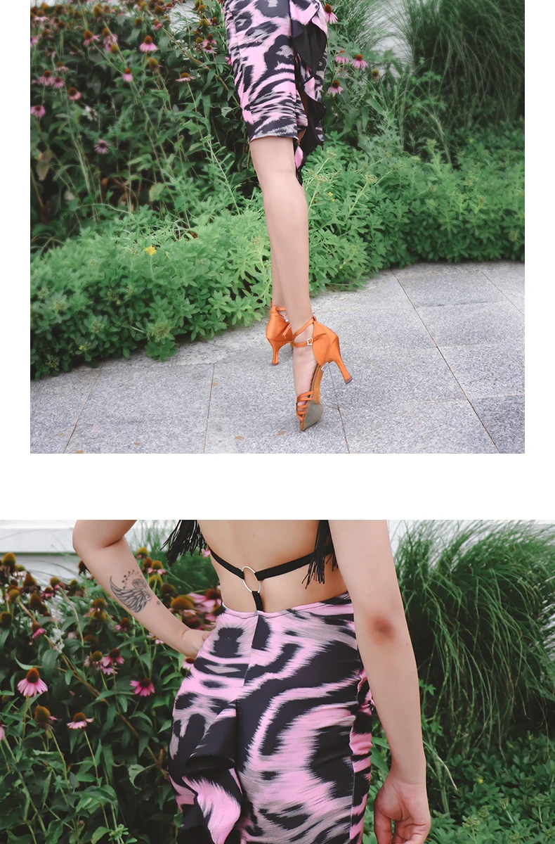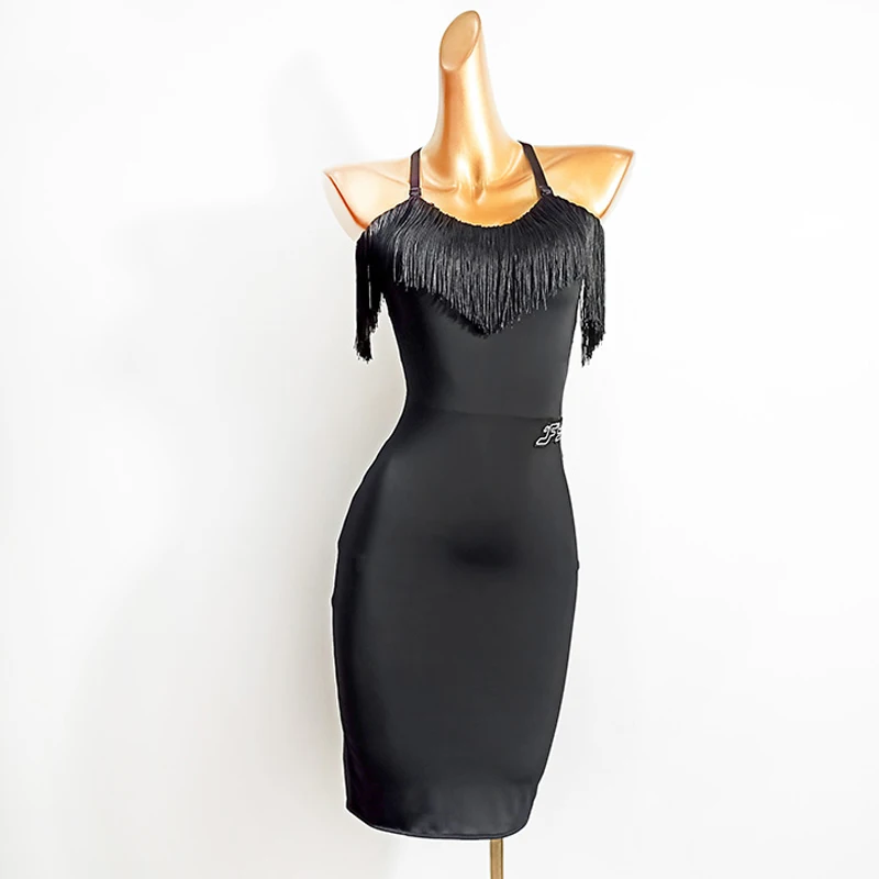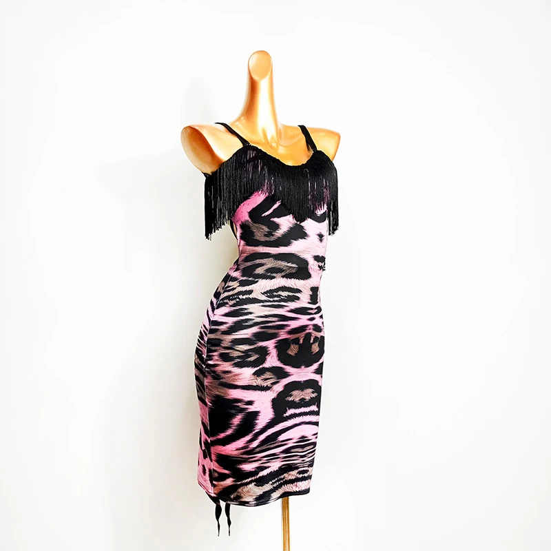 Одежда для латинских танцев платье с низким вырезом на спине, с бахромой, платья для женщин в африканском стиле; Цвет черный, с леопардовым принтом, для танцев, тренировочная одежда Самба Танго выступление костюм VDB2254