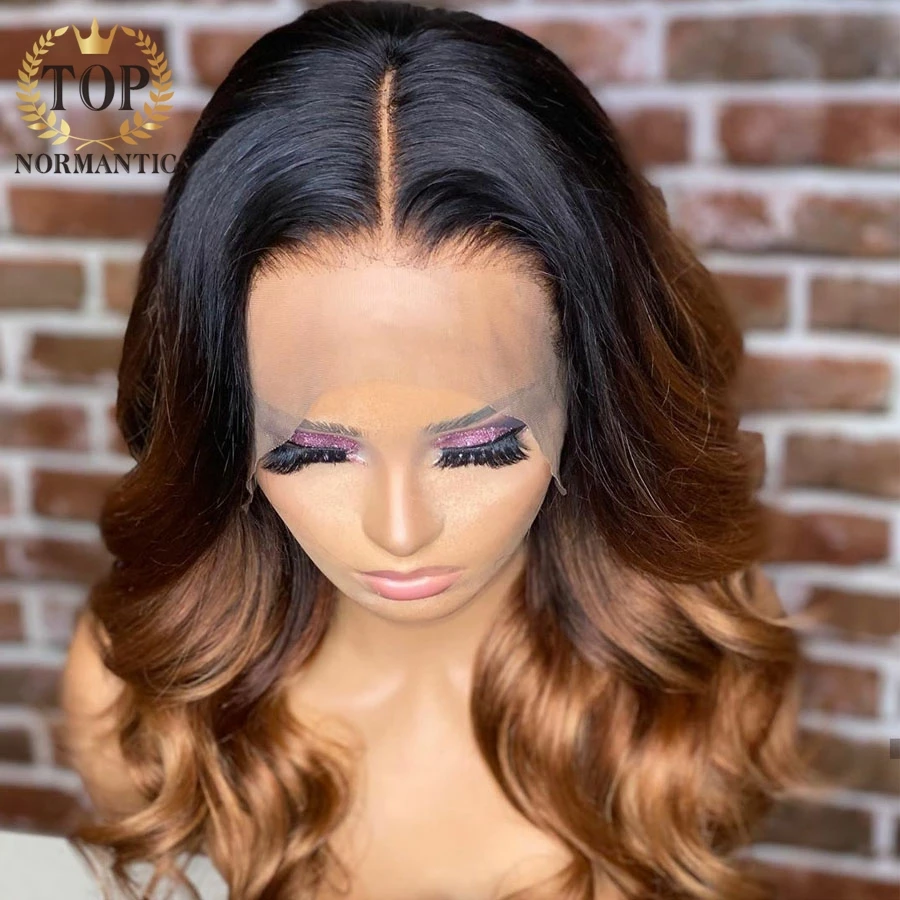 Topnormantic 13x 6 кружевные передние волнистые парики предварительно выщипанные 4x4 волосы Remy бразильские человеческие волосы Омбре коричневый цвет парик для женщин