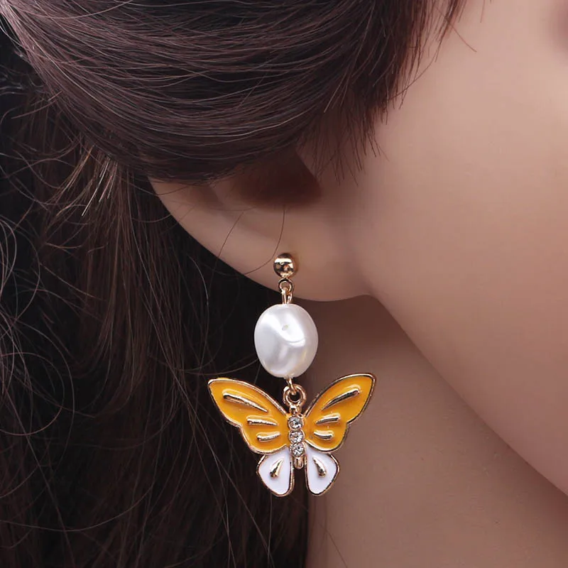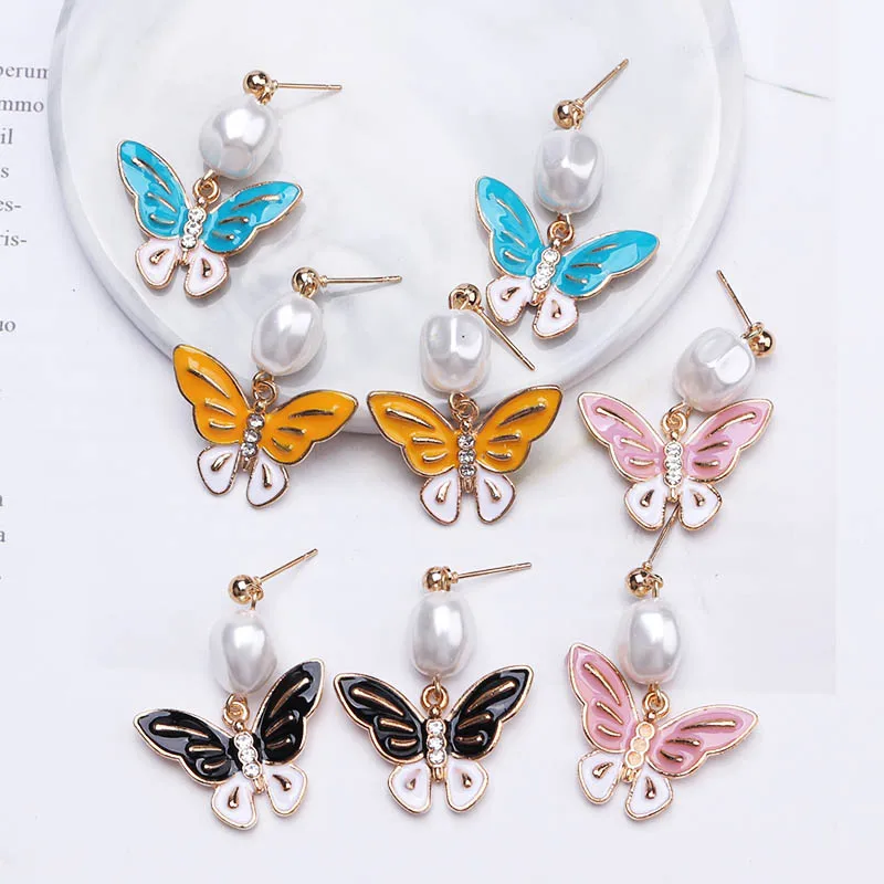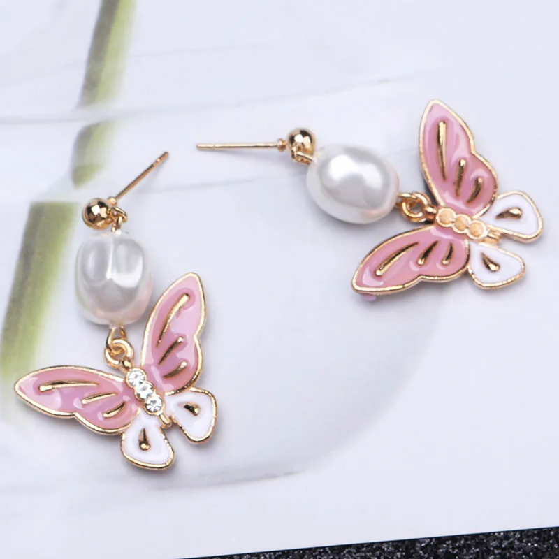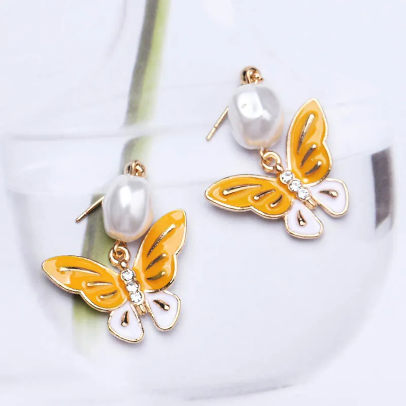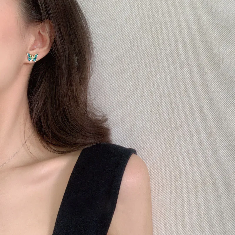 Корейские новые серьги-бабочки для женщин, яркие масляные эффектные элегантные серьги-гвоздики для девочек, очаровательные модные украшения для ушей