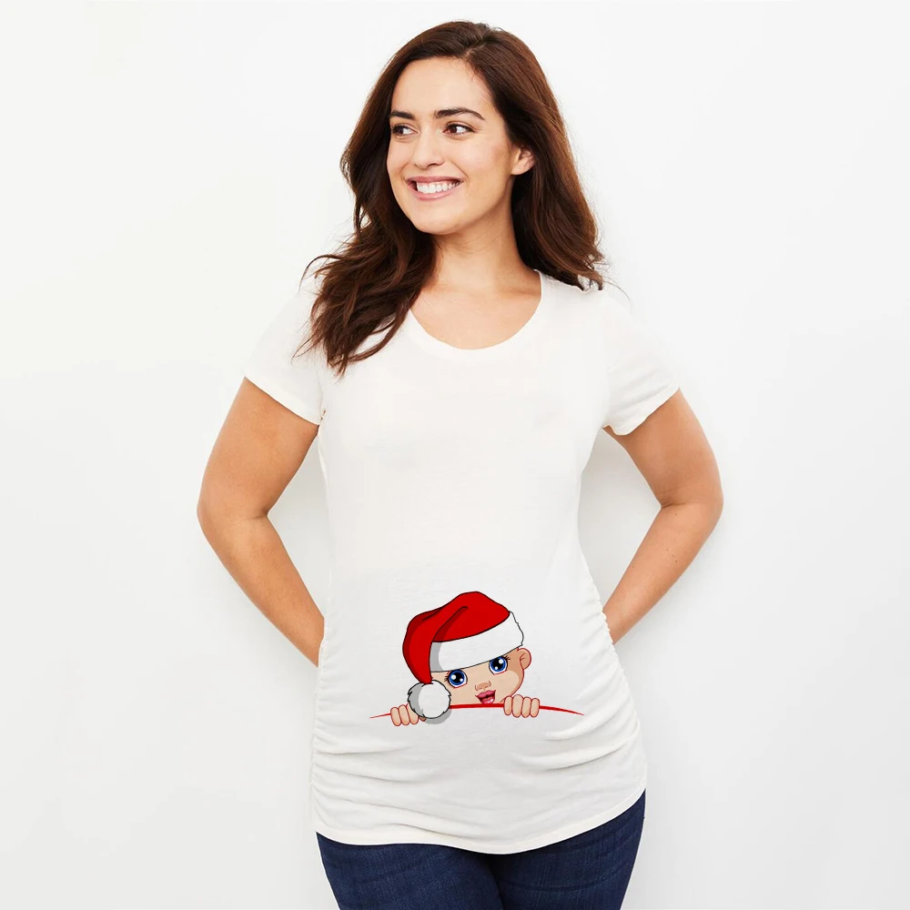 Модные Рождественские футболки для беременных женщин с Санта-Клаусо...