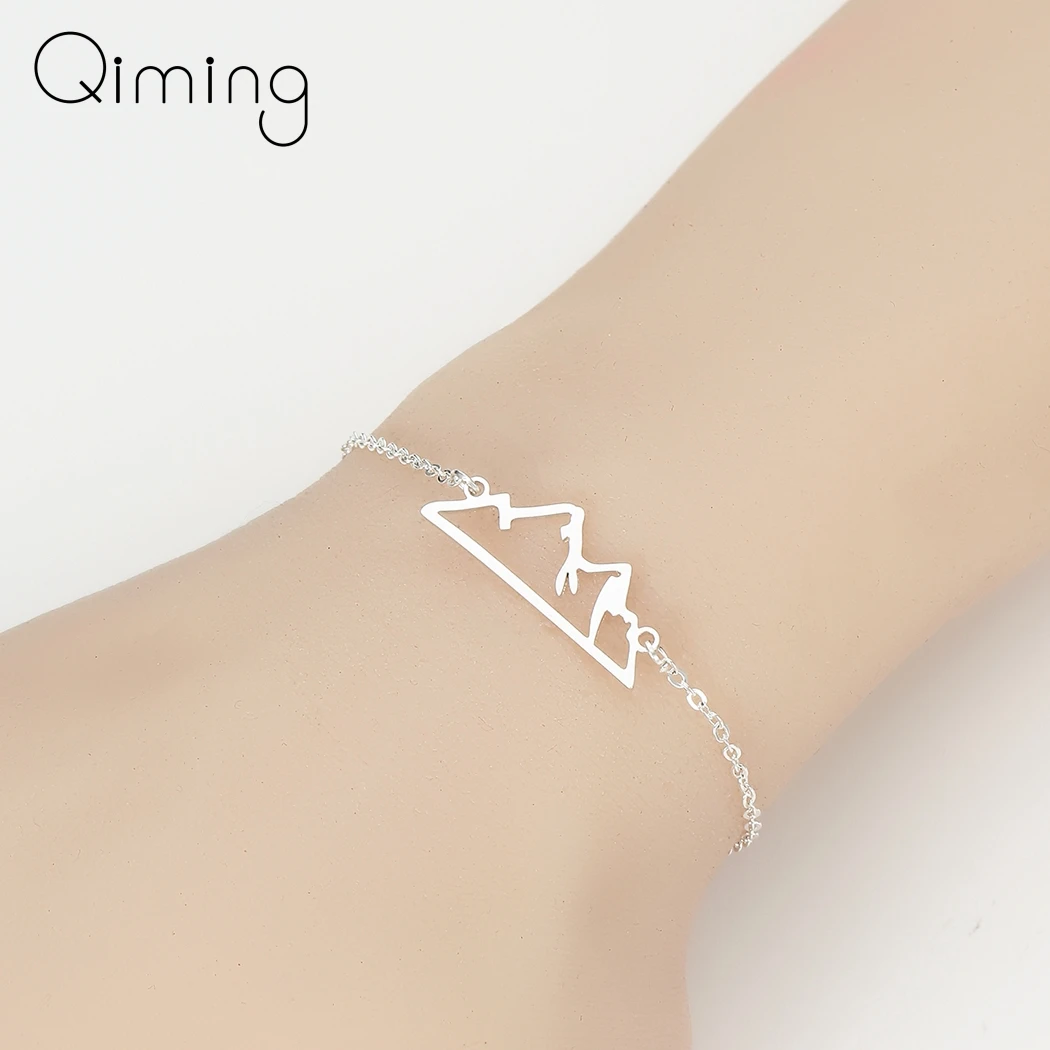 QIMING походные горные женские браслеты ручной работы из нержавеющей стали винтажные простые дорожные ювелирные изделия браслет для девочек
