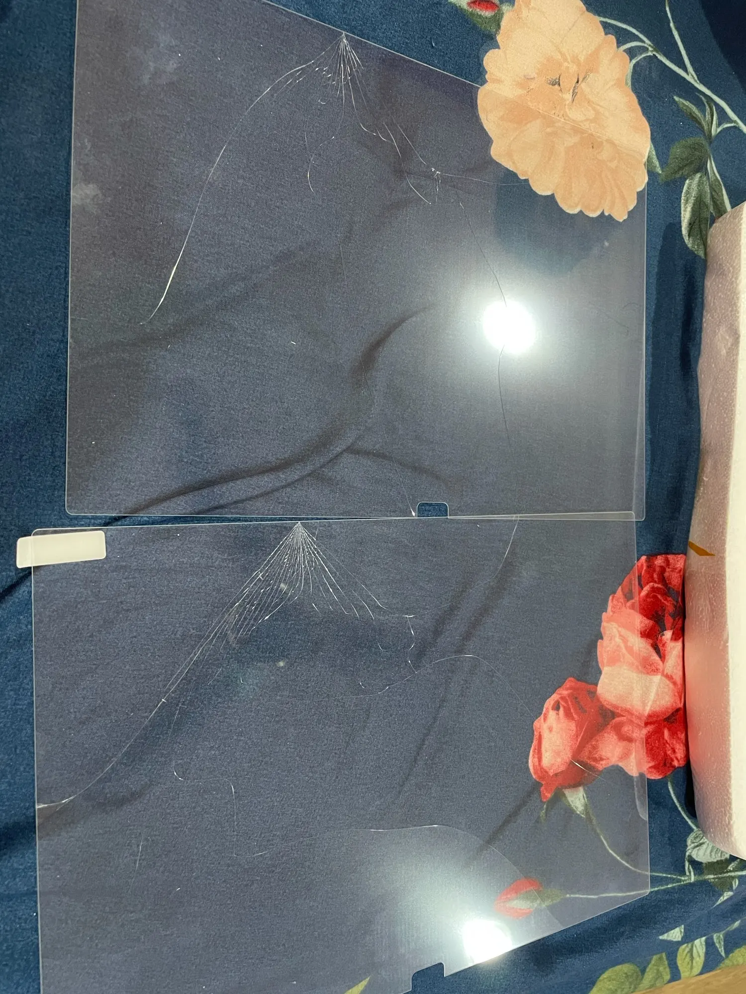 Защитное стекло было одним слоем клея вместо двух, которые выбирают id.
