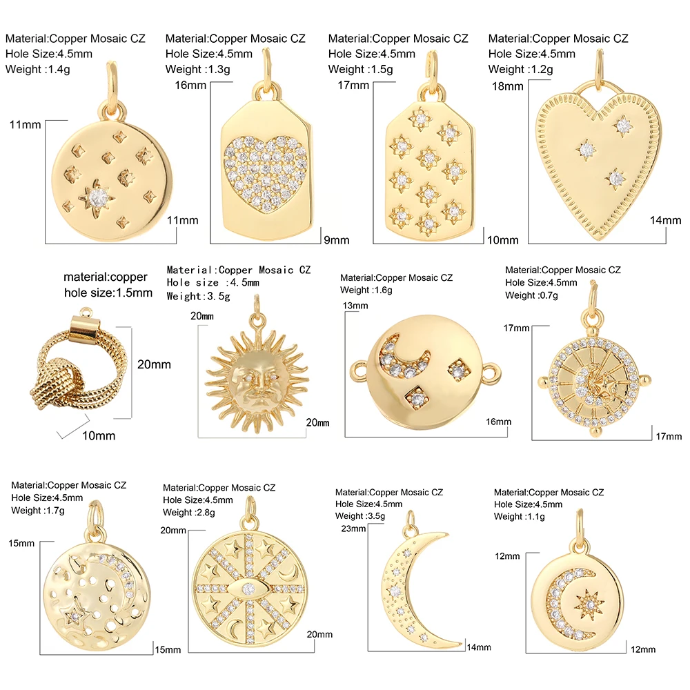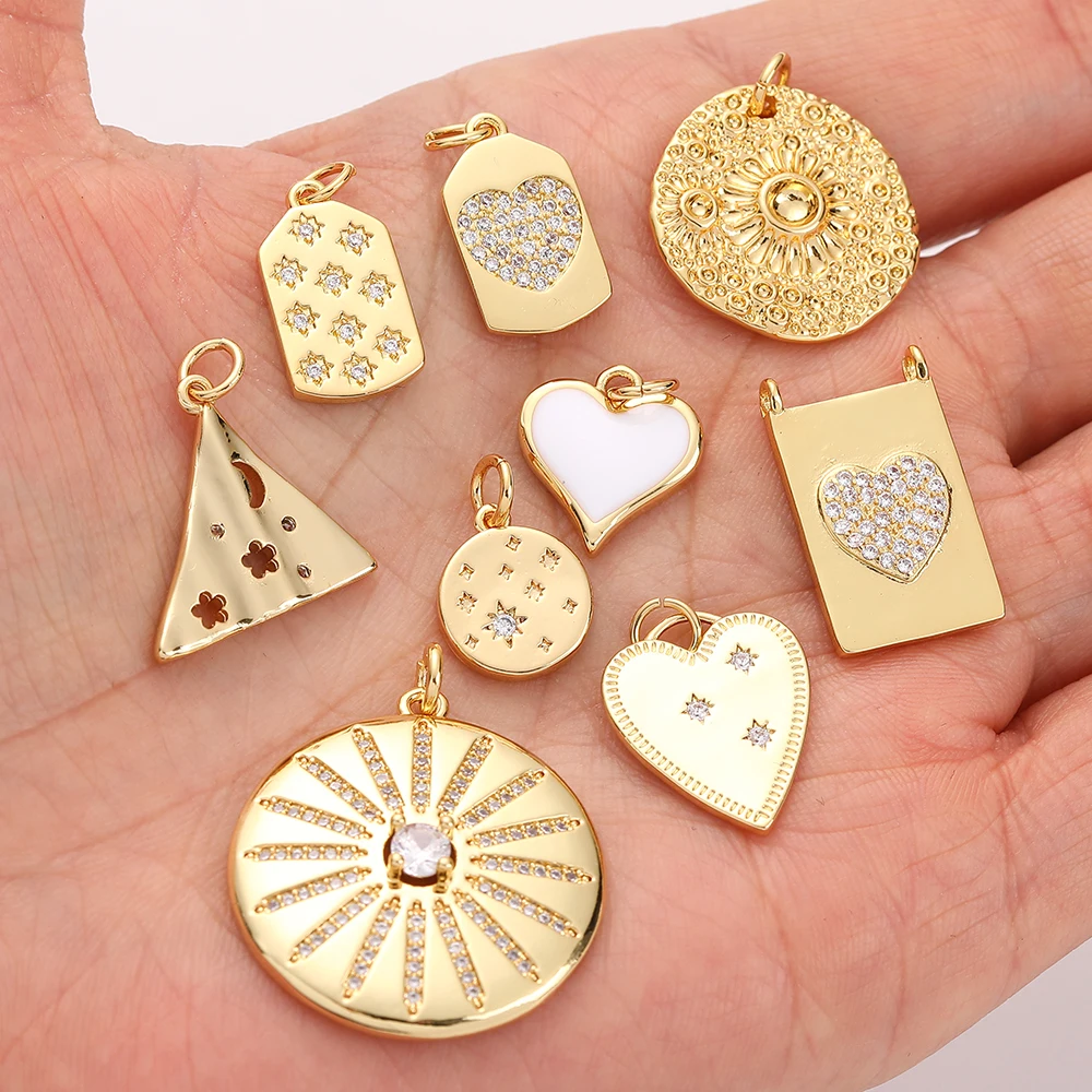 Шармы для изготовления ювелирных изделий, подвеска в виде сердца, солнца, звезды, Луны, серьги, браслета, ожерелья, медные циркониевые аксессуары