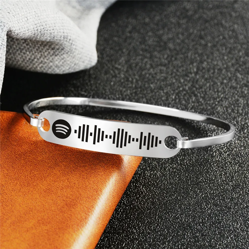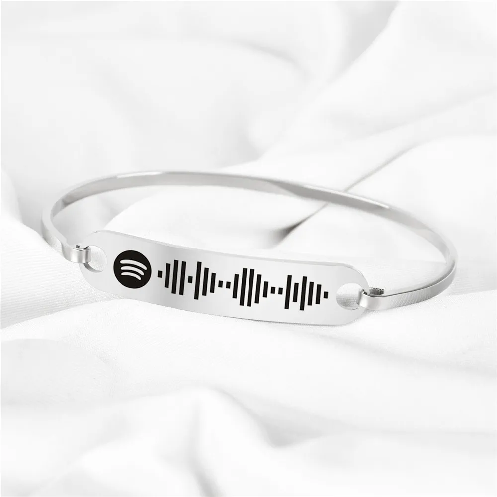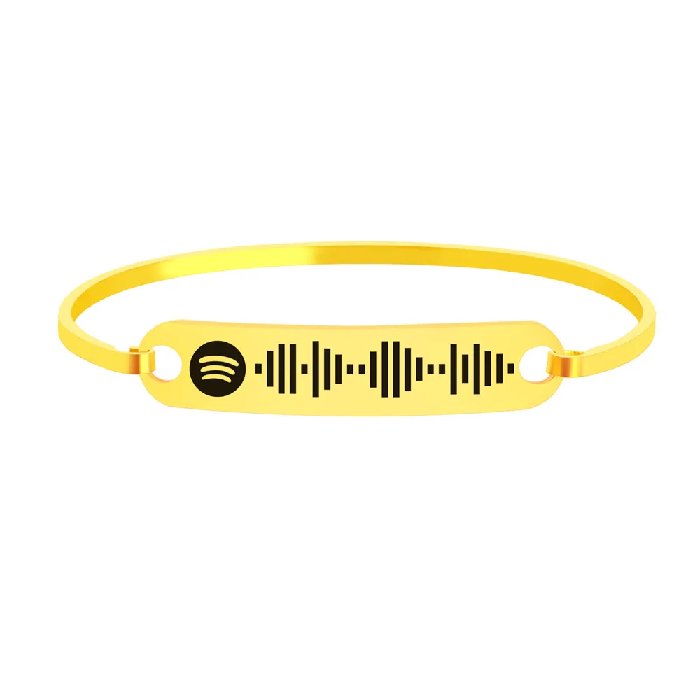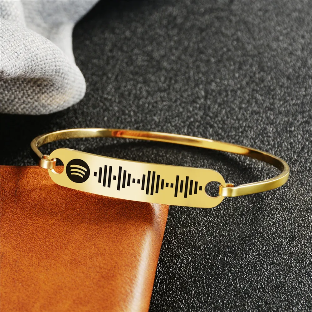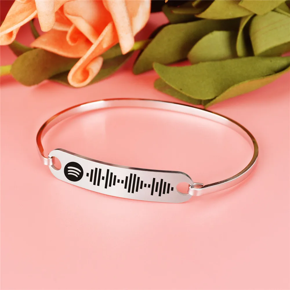 Женский Браслет-манжета Spotify, браслет из нержавеющей стали с лазерной гравировкой, ювелирное изделие