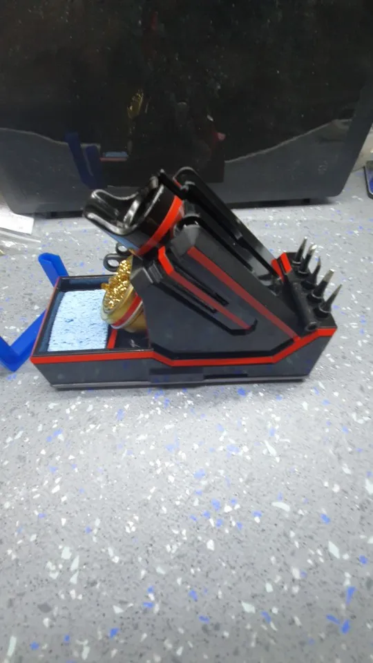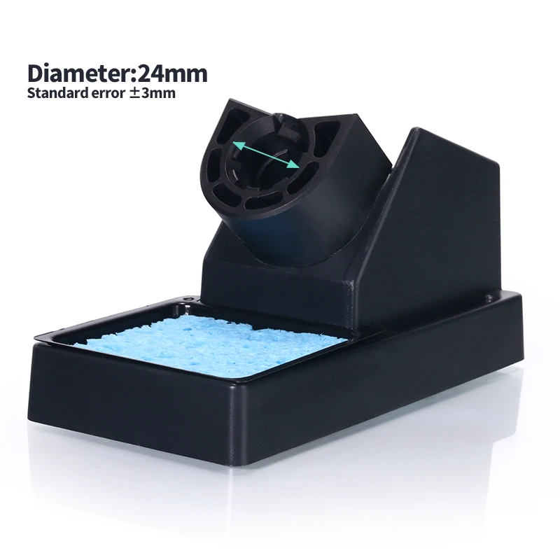 Отличная подставка. Подходит и под крупные паяльники и даже под TS100. Продавец упаковывает только в картонную коробку и простой полиэтилен. С первого раза доставили битую. Пластик хрупкий. Но продавец отправил ещё одну (упаковали так же). Второй раз доехало без повреждений. Продавцу лайк (просите только чтобы нормально упаковывали), подставке лайк!