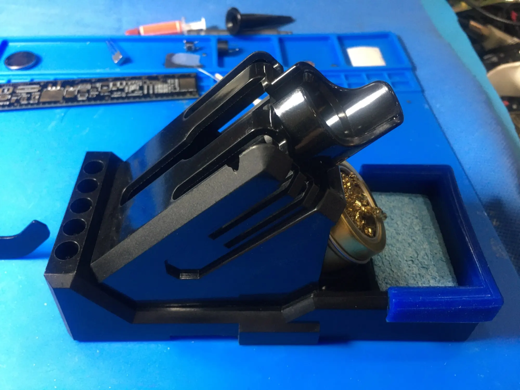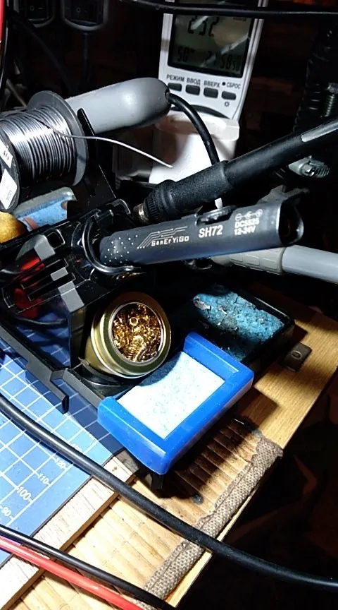 Основание бакелита, которое удерживает тепло паяльника, делая некоторые изменения очень практичными, мне пришлось поставить железную основу, чтобы она весила и не поворачивалась, я сделал самые большие отверстия, чтобы поставить советы наоборот, и немного настроить его, чтобы он не был таким серьезным, в конце концов, очень практичная основа
