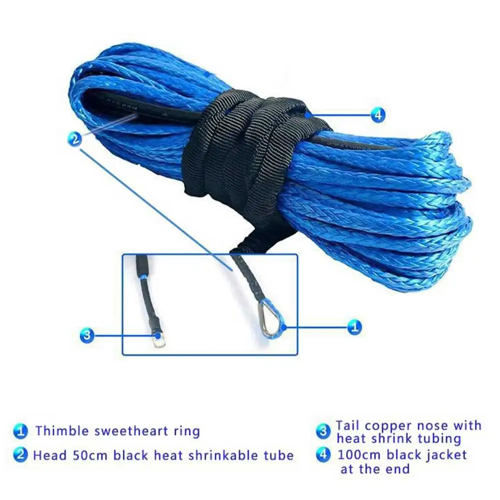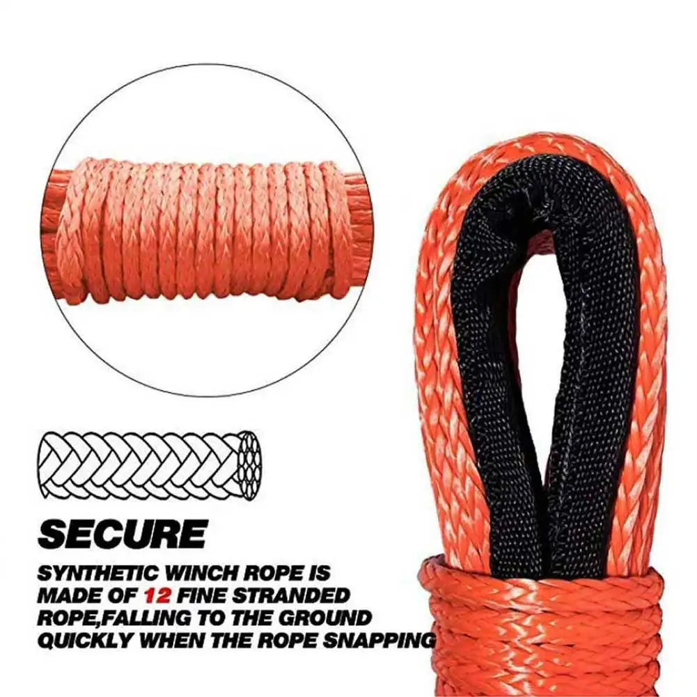 Трос 14 дюйма х 50 дюймов для автомобиля, буксировочный синтетический трос для лебедки, наружные аксессуары, 12 нитей, аварийный трос с оболочкой 7700lbs ATV UTV