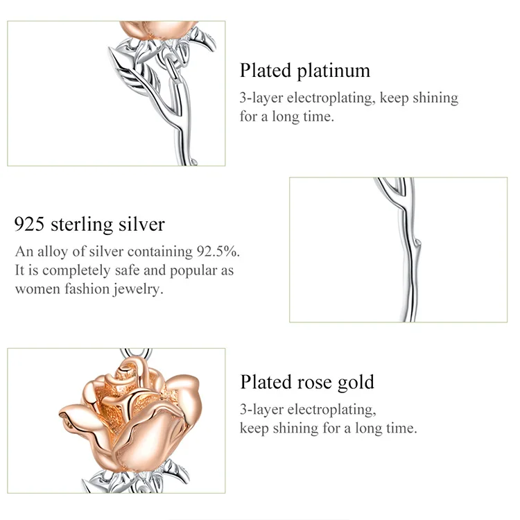 Bamoer, серебряные серьги с розами, Стерлинговое Серебро 925 пробы,...