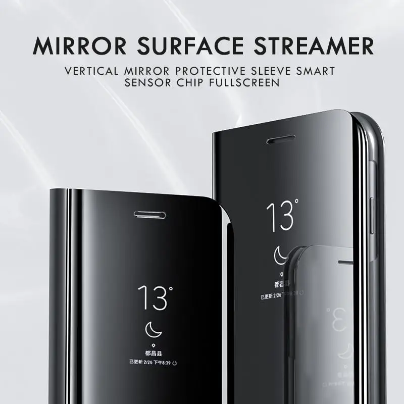 2. Умный зеркальный кожаный чехол-книжка, быстро просматривает SMS, звонки, дату, время и т. д.