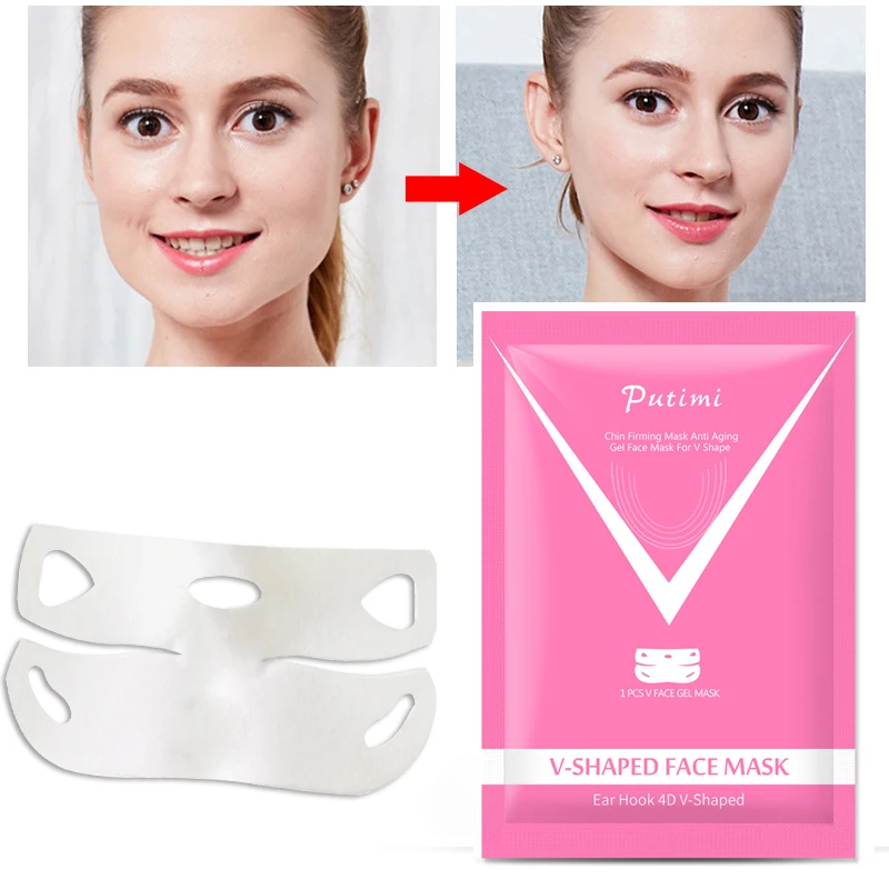 Гелевые маски PUTIMI для подбородка, V-маска для лифтинга, маска для лица с редуктором для двойного подбородка, V-образная бандажная маска