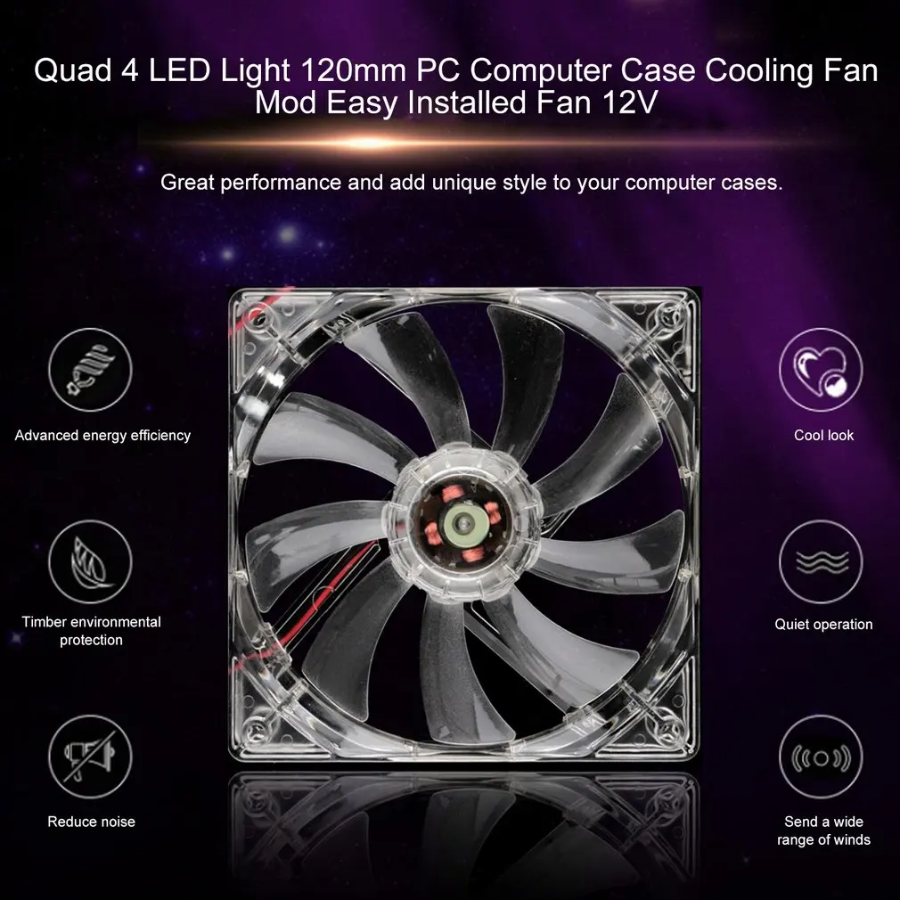 Вентилятор для компьютера, 120 мм, с 4 светодиодный дами, с тихим разъемом Molex, 12 В