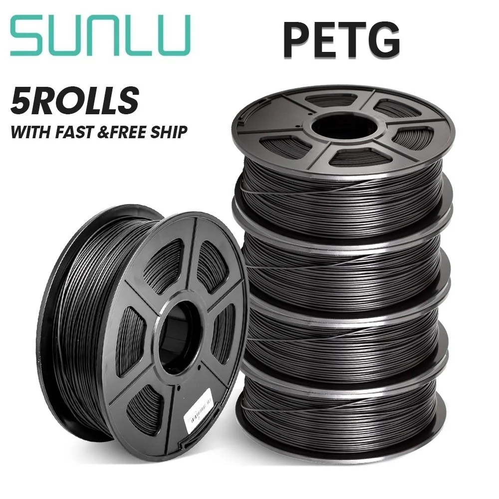 Нить SUNLU PETG, 5 кг, 1,75 мм, 320 мрулон, черно-белая нить для 3D-принтера FDM3D без трещин и деформаций