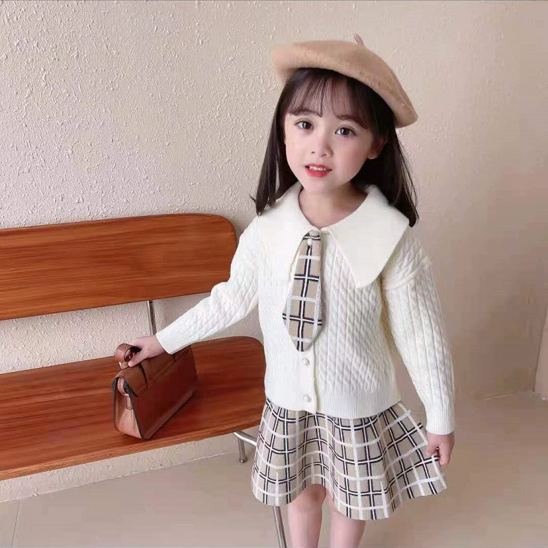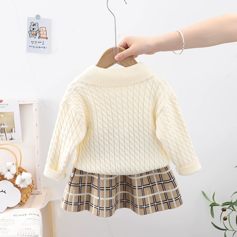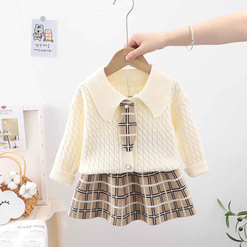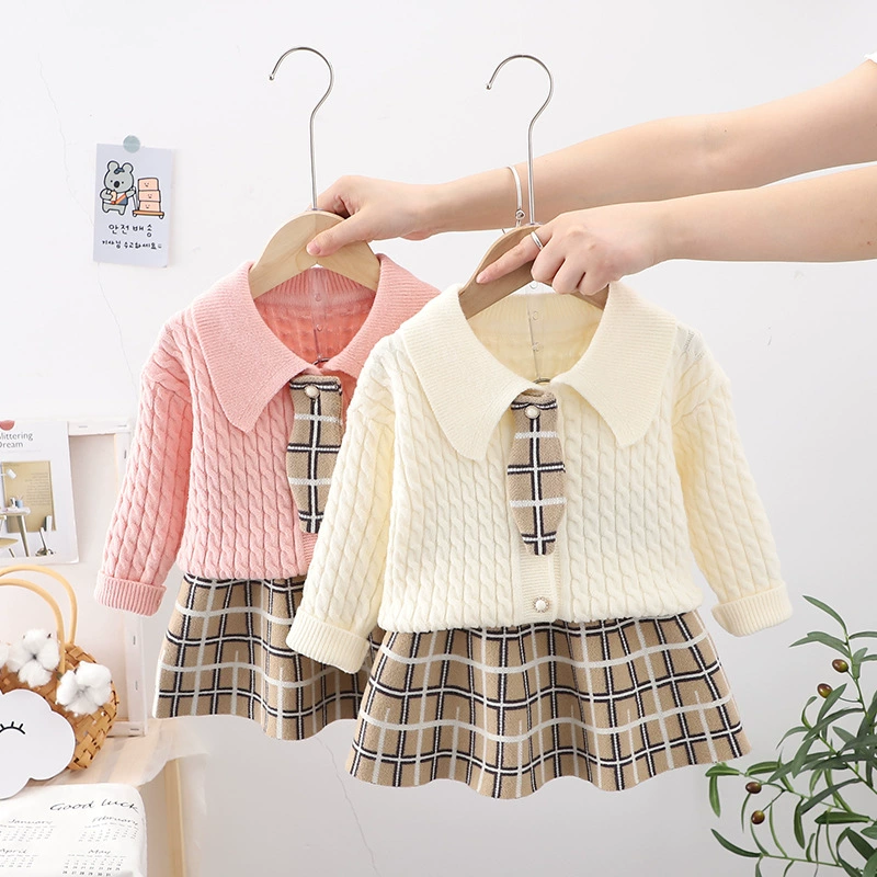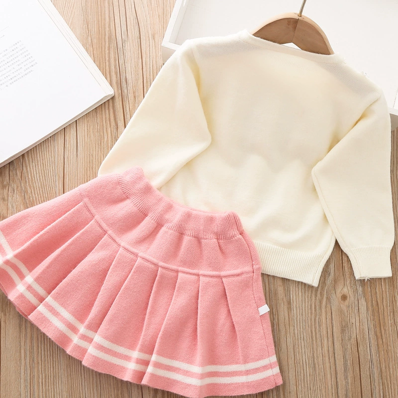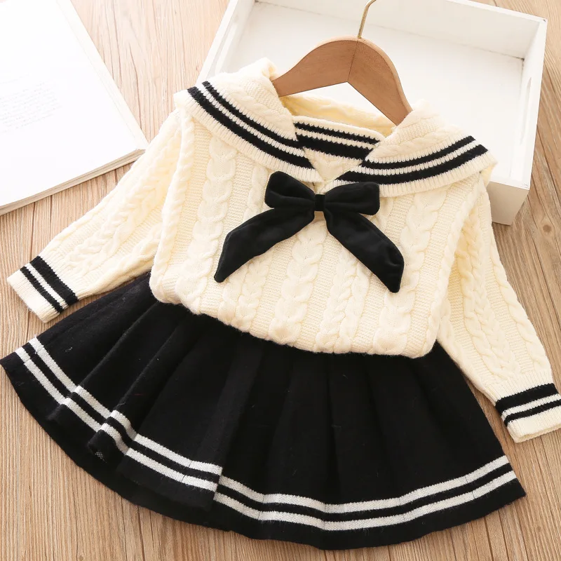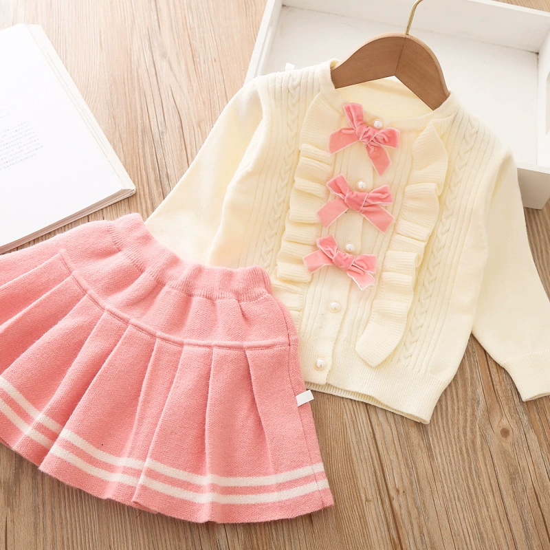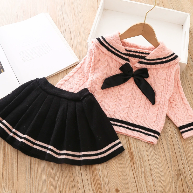 Новинка, детская одежда, весна 2022, комплект одежды для маленьких девочек, Топы + юбка, костюм с юбкой-пачкой и бантом, детский зимний свитер для маленьких девочек