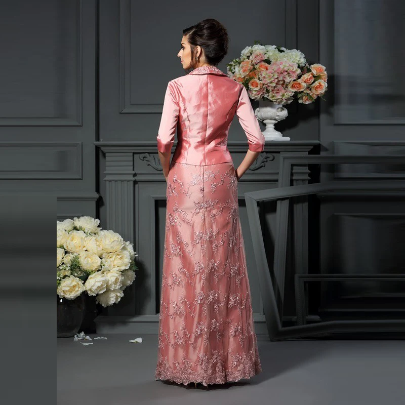 Женское кружевное платье для матери невесты, длинное платье из двух частей с жакетом на плечах и лямками для гостей свадьбы