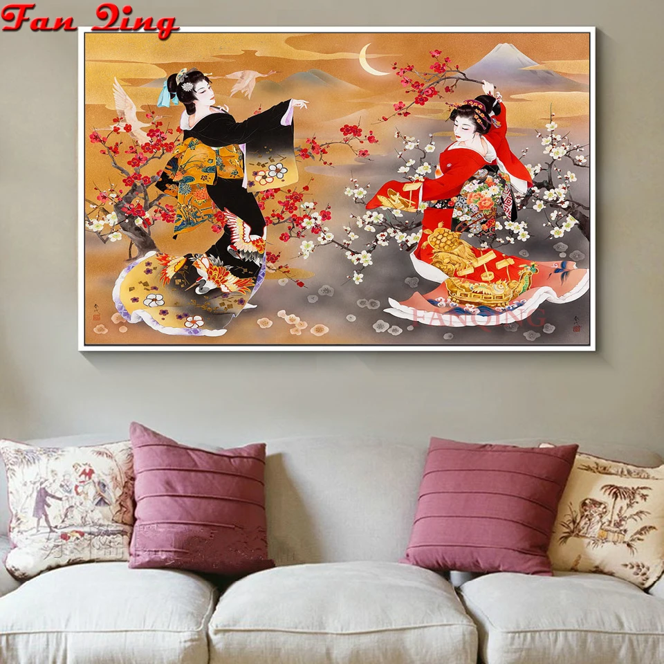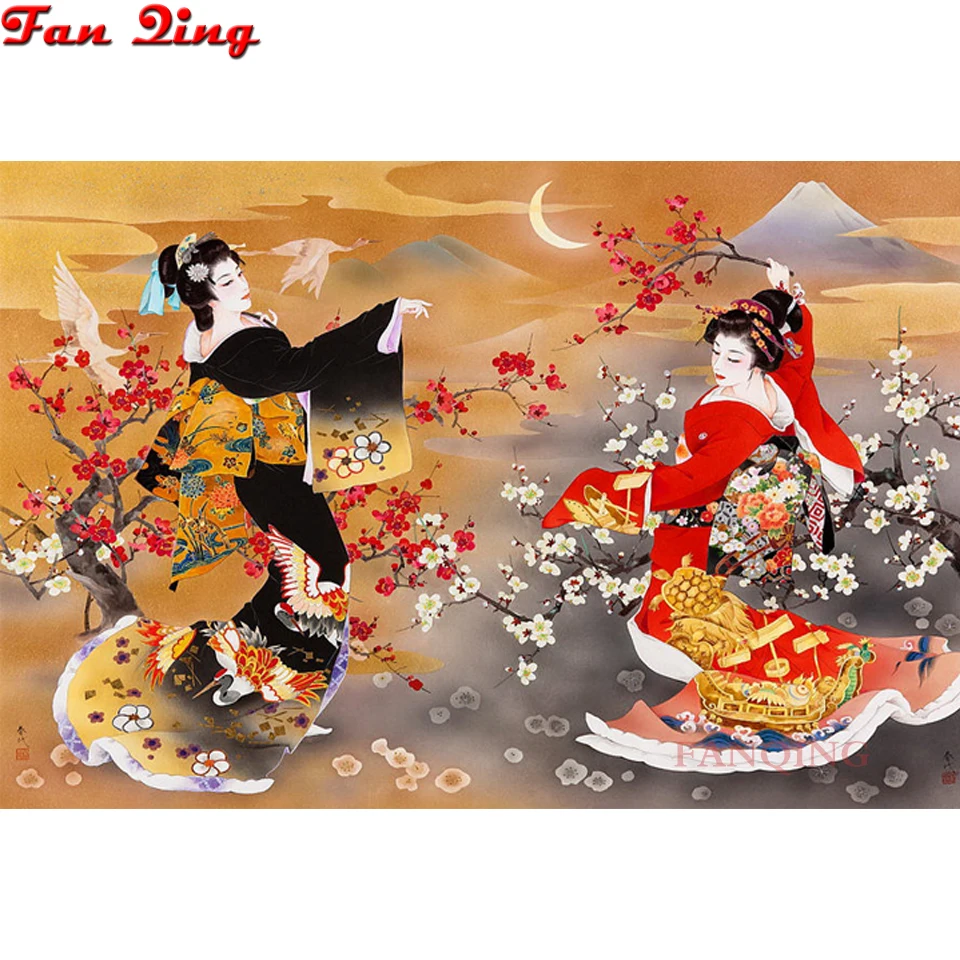 Полная квадратная алмазная живопись японские гейши Алмазная вышивка алмазная живопись полная круглая классический Декор «сделай сам» кимоно для женщин