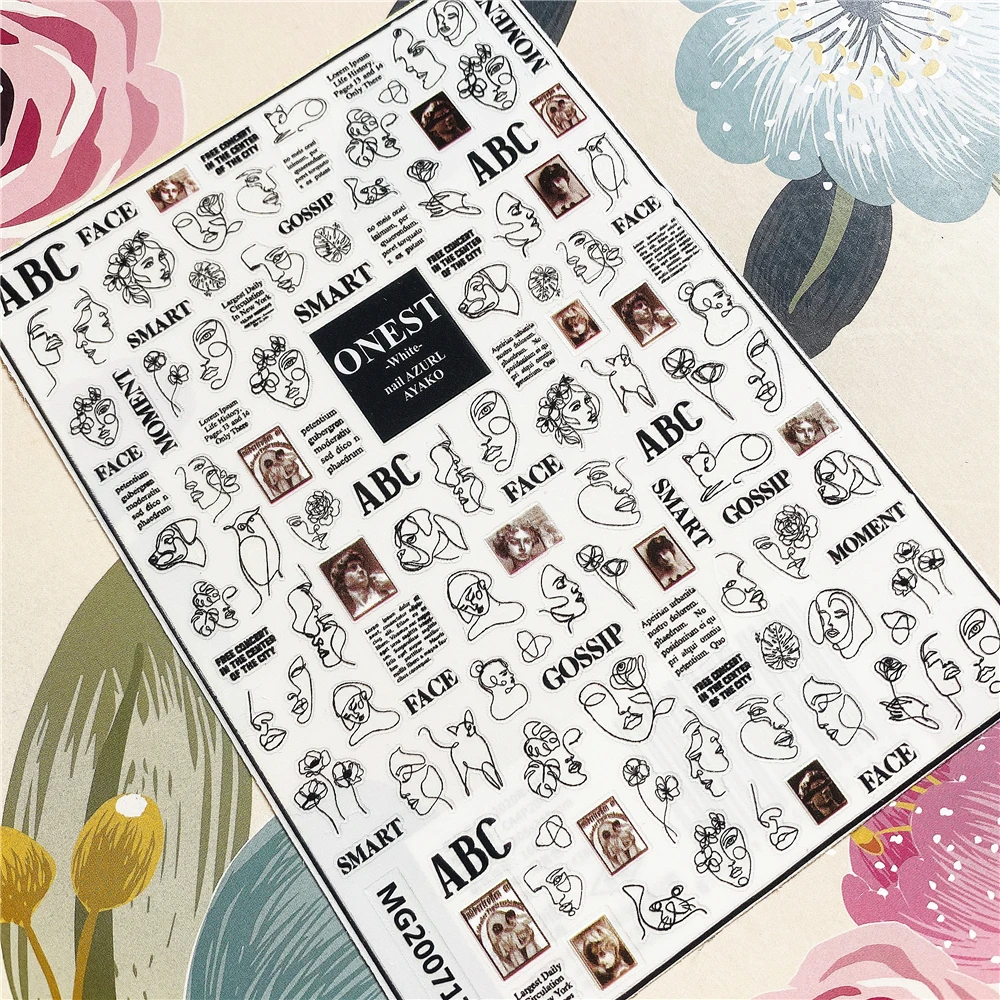 MG200717-02 Цветной абстрактный уход за кожей лица-геометрическая форма 3D задняя клей для ногтей Наклейка Виниловые наклейки на стену для художественного оформления ногтей Nail art Украшение для ногтей