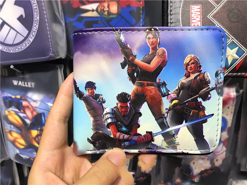 Кошелек Fortnite из искусственной кожи для мужчин, короткий бумажник двойного сложения с рисунком аниме-игры, для мальчиков и детей, кредитница с зажимом для денег, подарок на день рождения
