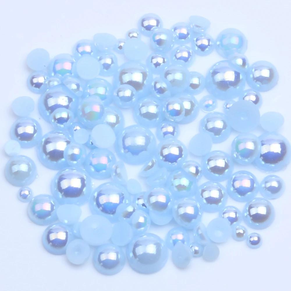 1,5-12 мм светло-голубой цвет AB полукруглый ремесло из пластика ABS, имитация жемчуга Flatback Скрапбукинг бусины горный хрусталь аппликации для свадебное платье DIY украшения