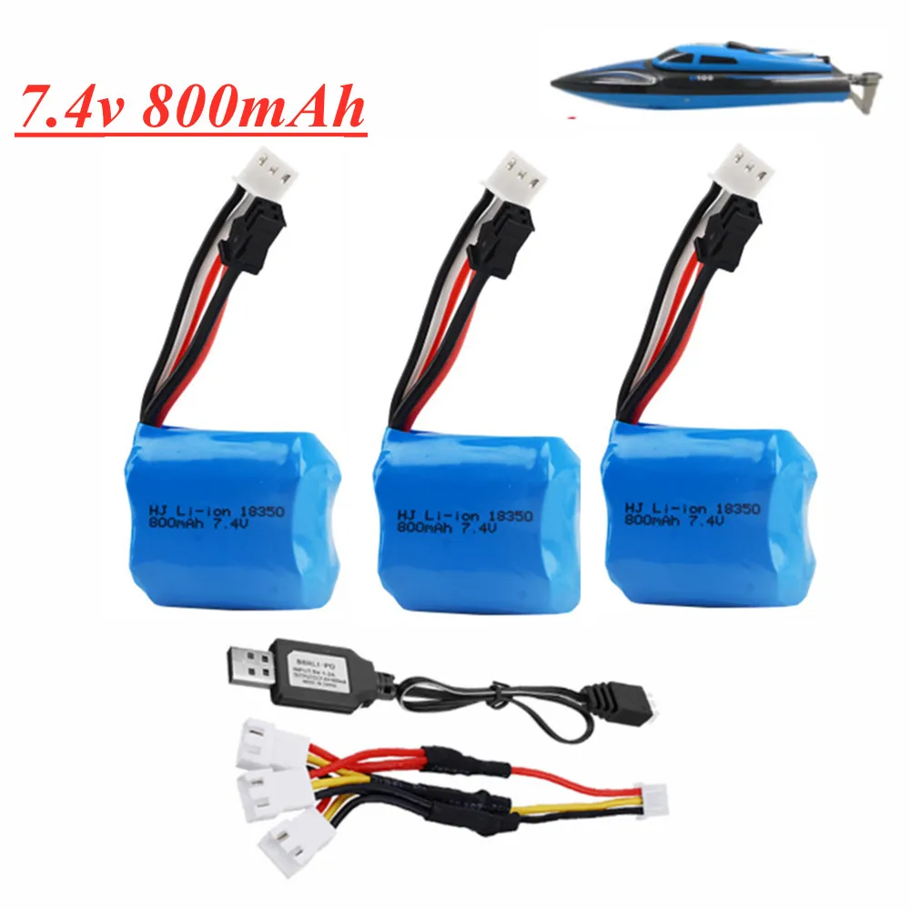 Обновленный Аккумулятор 7,4 В 800 мАч 18350 для H100 H102 H106 7,4 В, комплект зарядного устройства для литий-ионных батарей для JJRC S1 S2 S3 S4 S5, высокоскоростная радиоуправляемая лодка