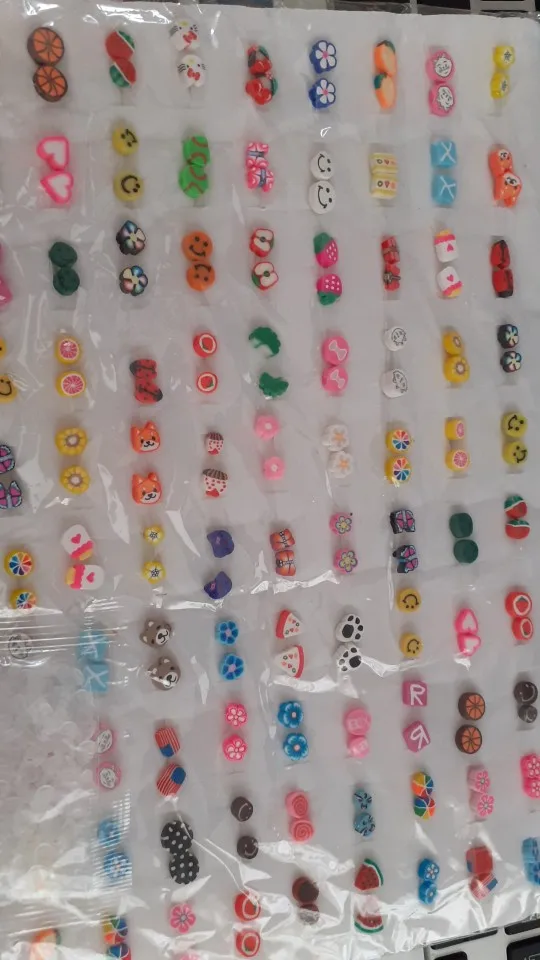 muy bonitos 100 pendientes,50 pares. diseños veraniegos de frutas ,mi nieta de 8 años feliz