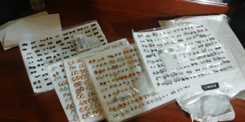 пришёл немного не тот набор, который я заказывала, немного хромает качество, облазиет черная краска с пластика, не было пару сережек, но в целом за такие деньги очень хорошо, прошли очень быстро