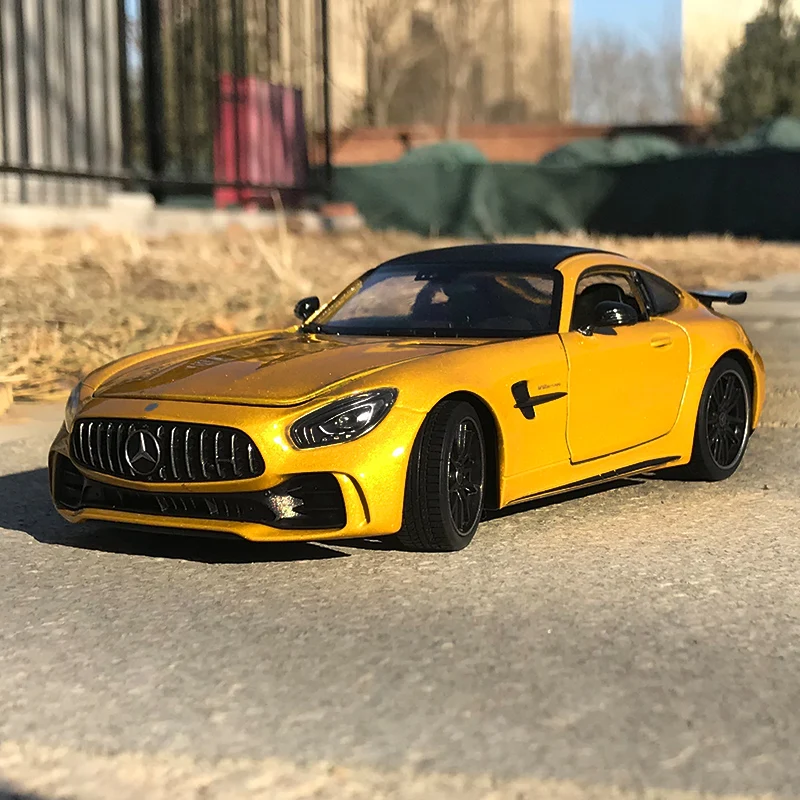 Желтая модель автомобиля Welly 1:24 Mercedes AMG GT R из сплава, отлитые и игрушечные автомобили, коллекционные подарки, игрушка для транспортировки без дистанционного управления
