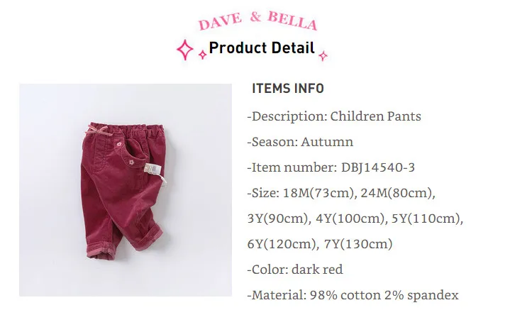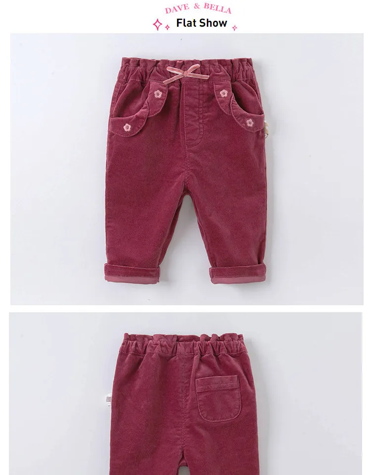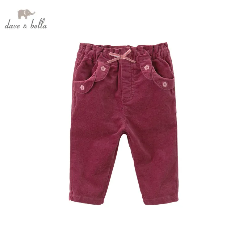 Детские длинные штаны с карманами и бантом, с цветочным принтом, для девочек, dave bella, Осенние штаны для младенцев, для детей ясельного возраста, 2019