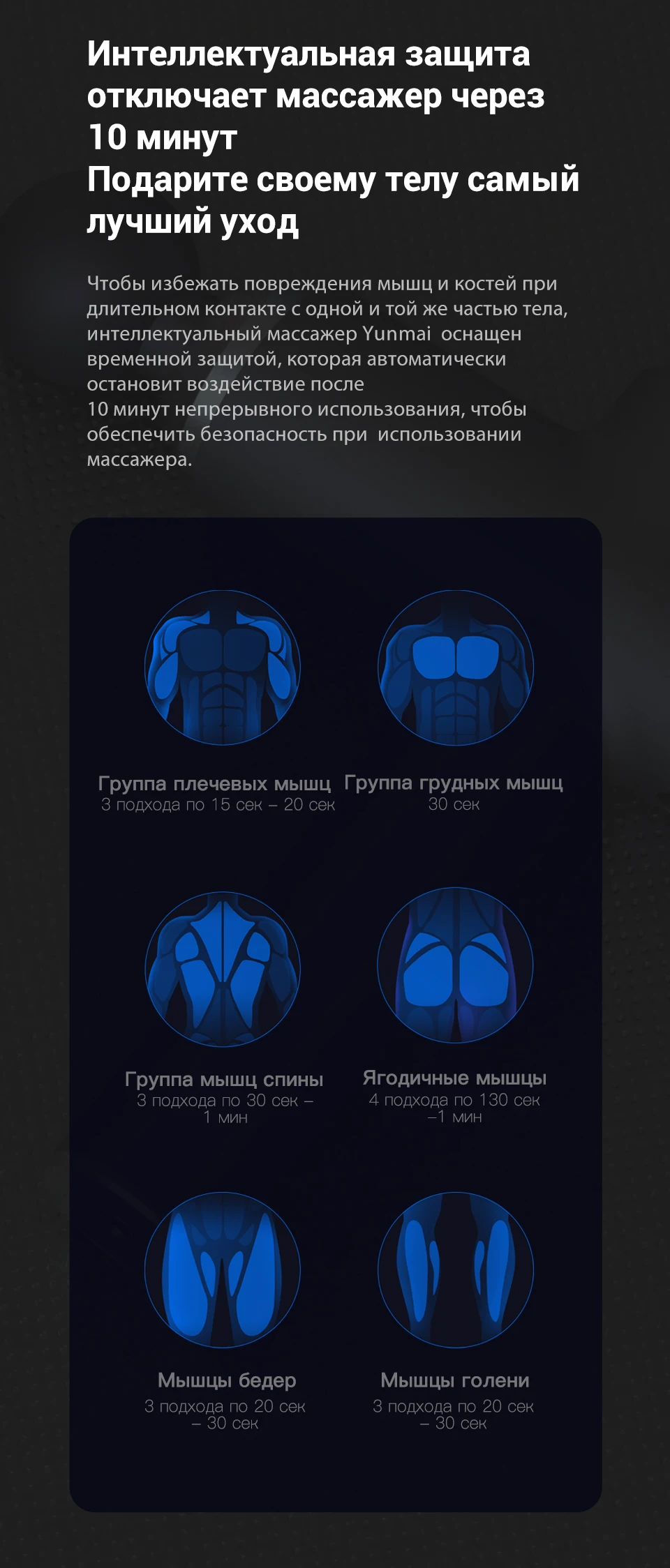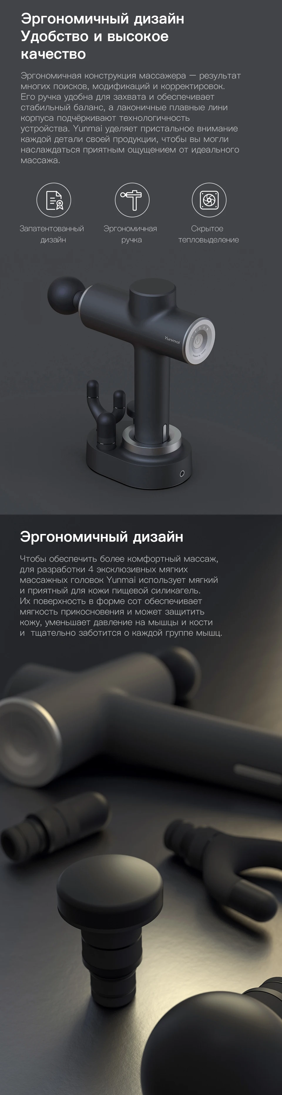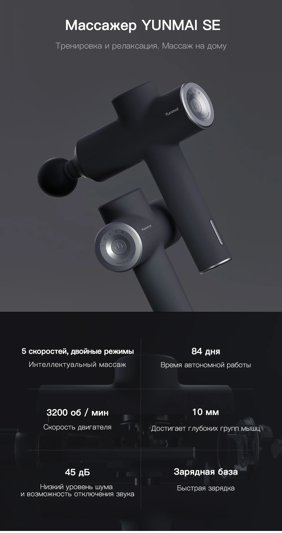 Массажный пистолет YUNMAI SE Fascia Massage Gun RU 5-скоростной режим массажа 4 массажные головки с зарядной базой