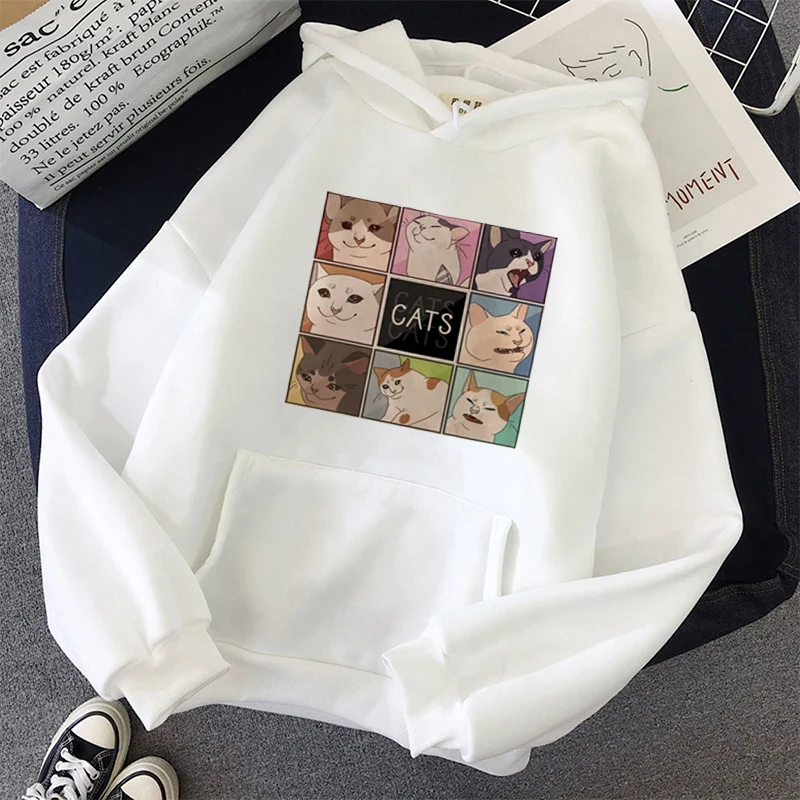 Худи женское оверсайз в стиле хип-хоп, худи с рисунком черной кошки...