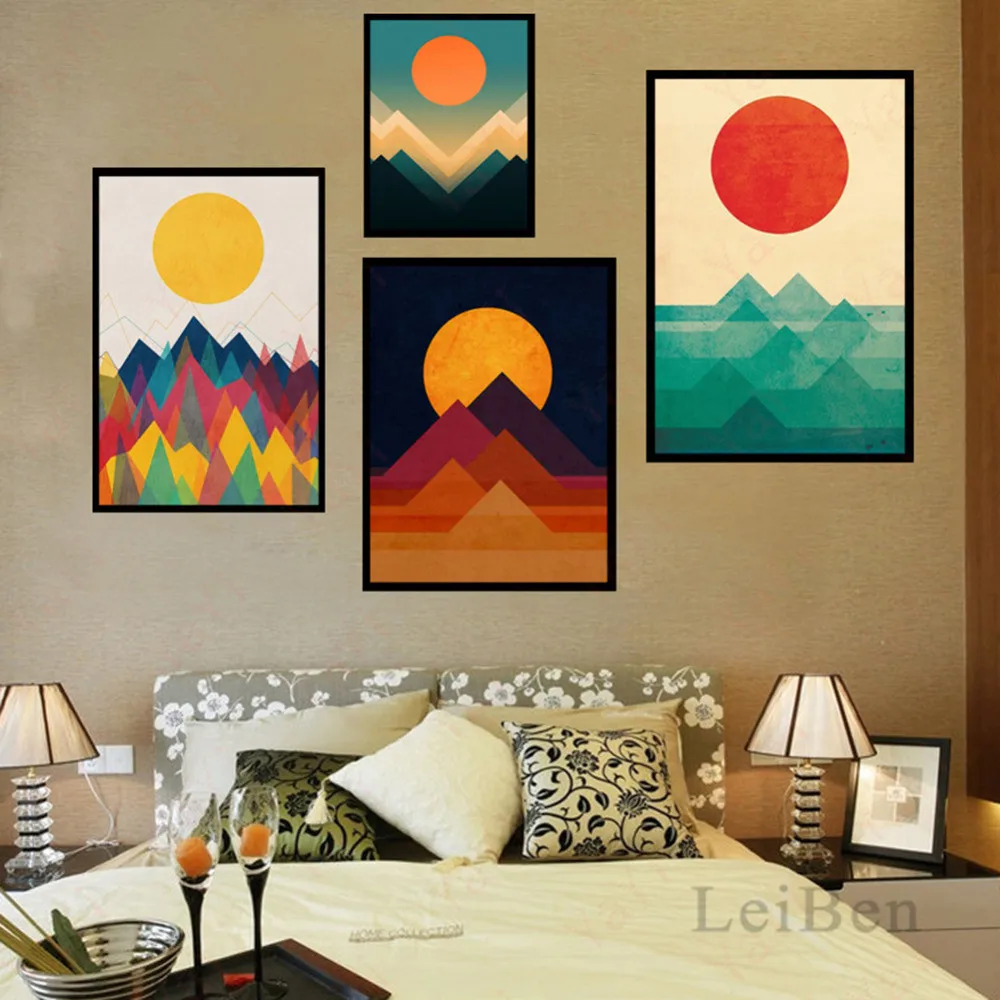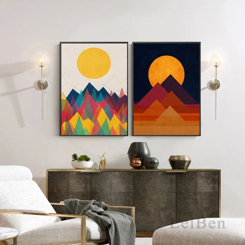 Абстрактная живопись, печатные Мультяшные плакаты с изображением солнца и горы для гостиной, украшения спальни в скандинавском стиле, Постер без рамки