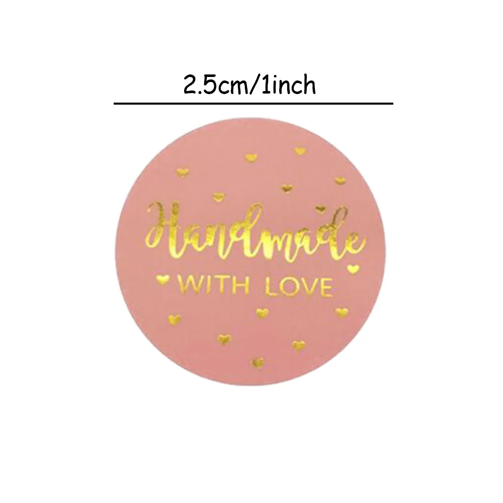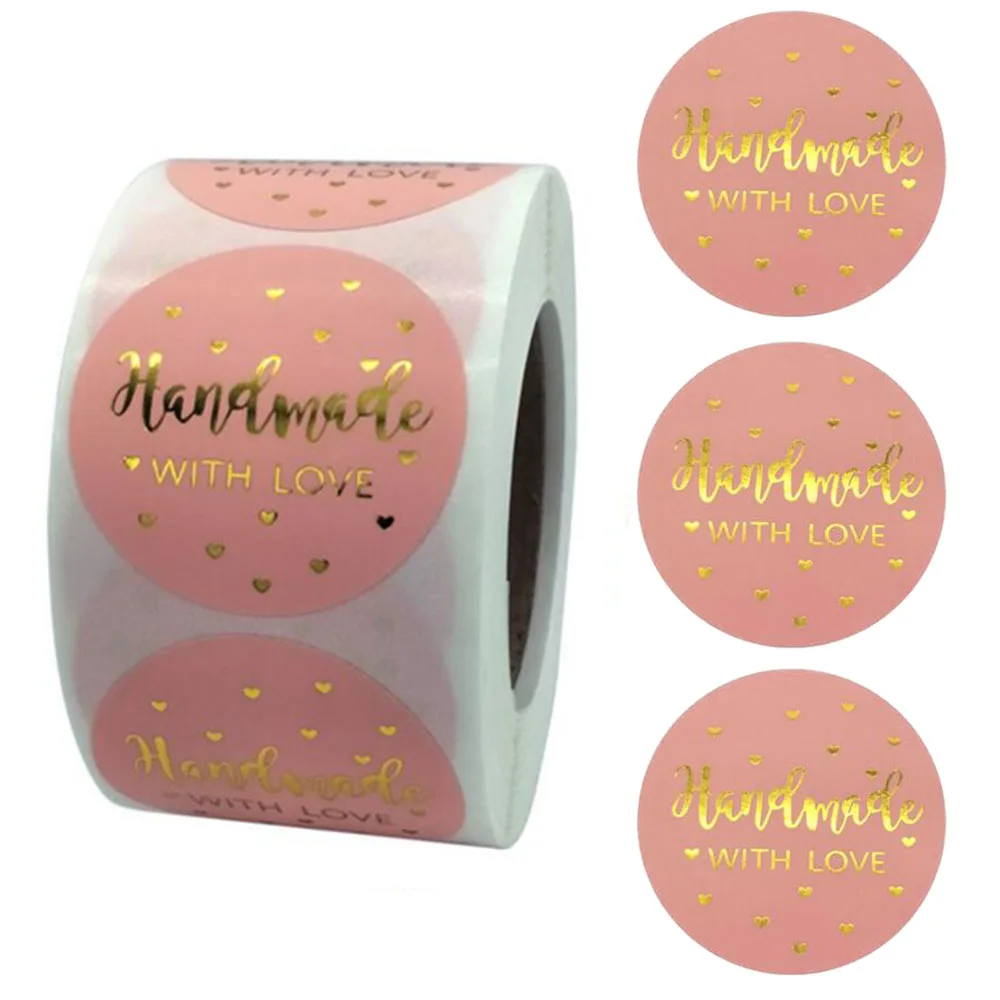 1 дюймовая розовая Золотая фольга ручная работа с любовью, 500 шт.рулон, ярлыки, наклейки, бумага для свадебной вечеринки, подарочные открытки, декоративные наклейки