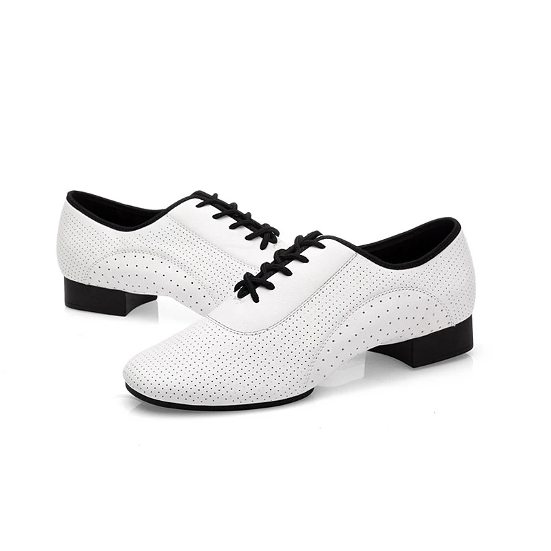 Туфли мужские из натуральной кожи, дышащие, на низком каблуке, с разрезом, для бальных танцев, сальсы, латиноамериканских танцев, L-003