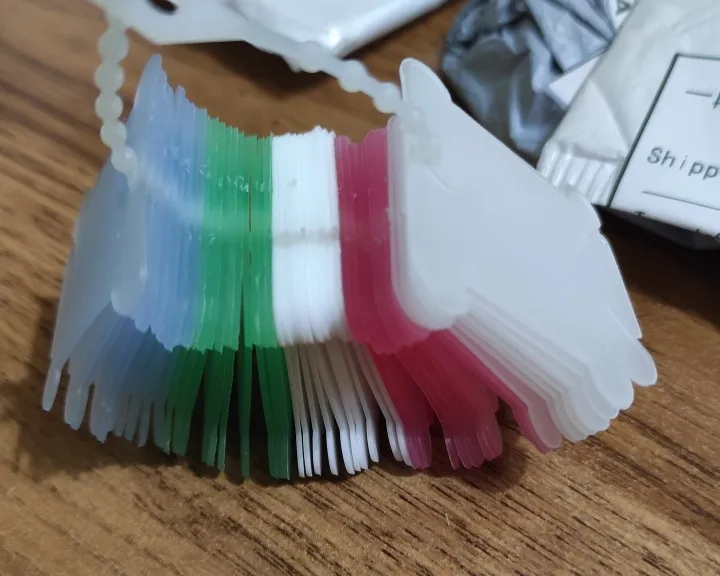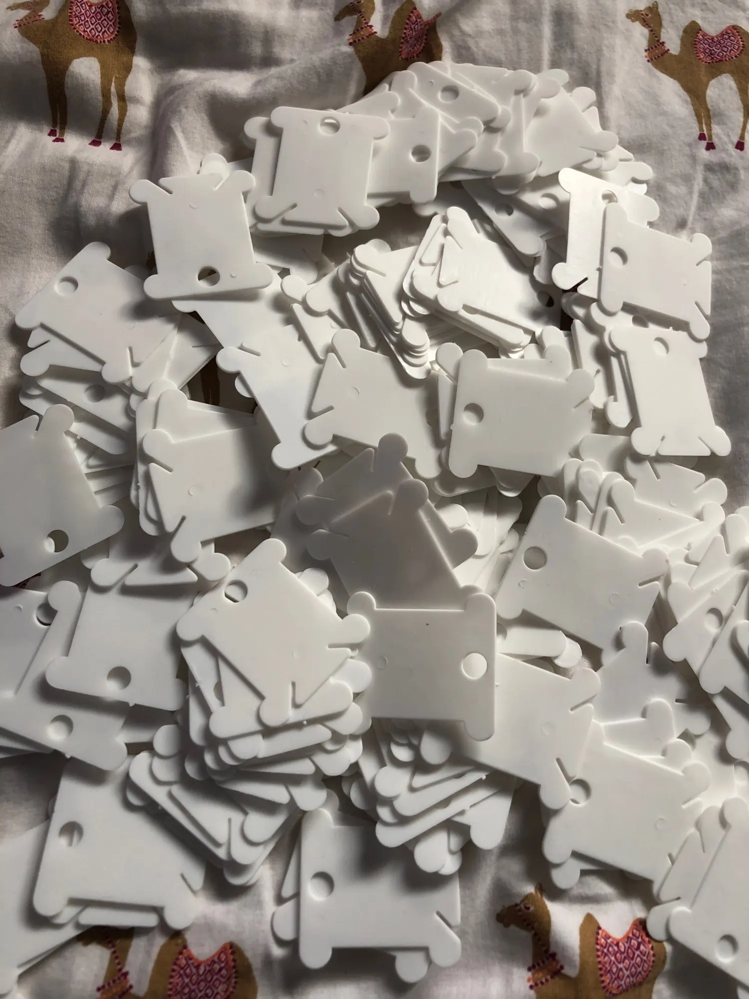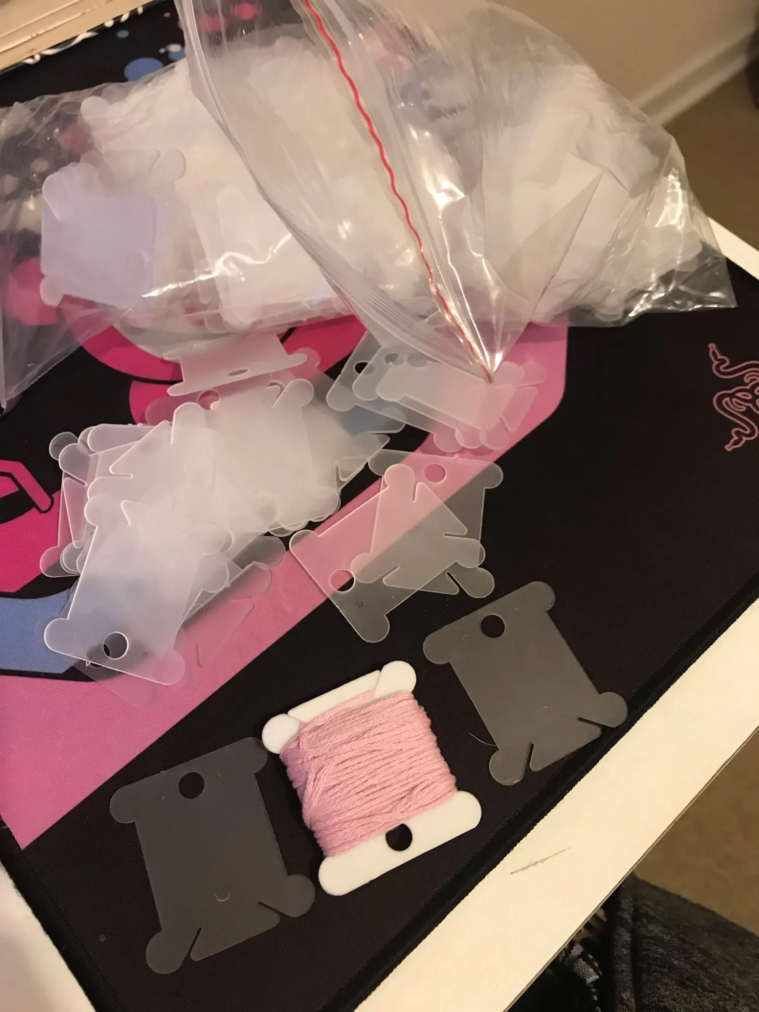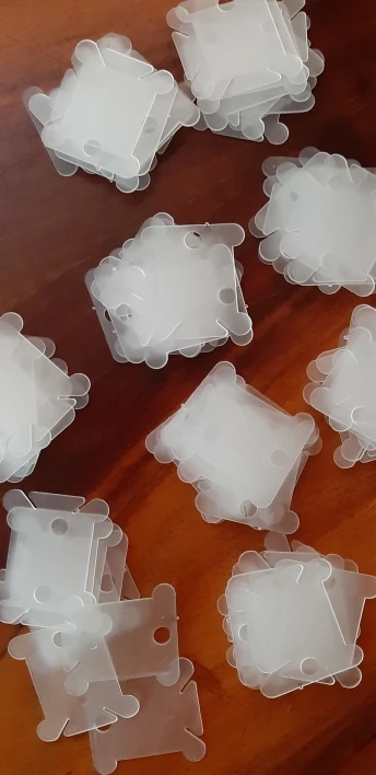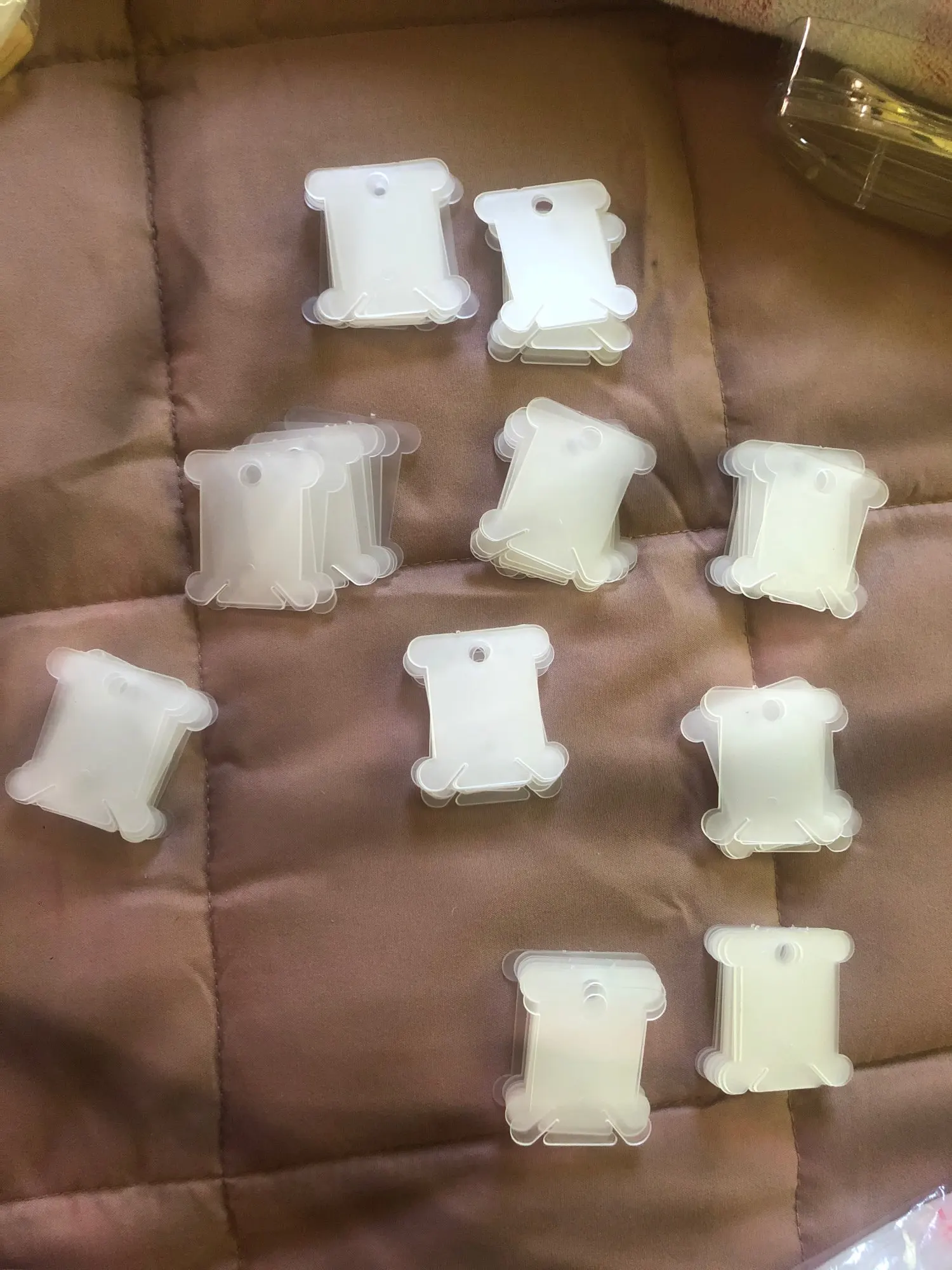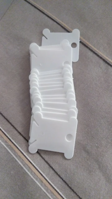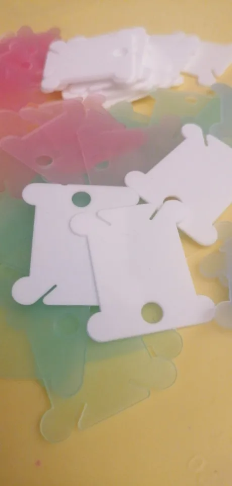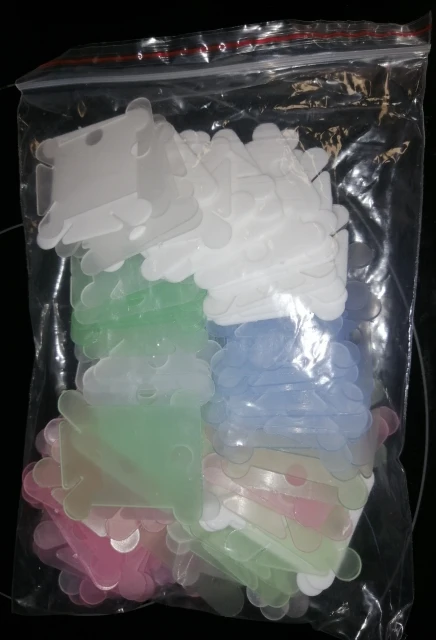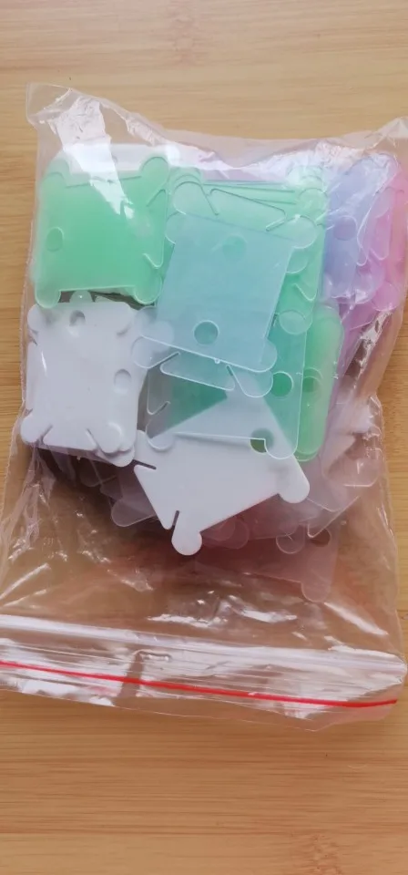 заказом довольна. все целы, упакованы были в пакет с пузырьками. количество 100 штук ровно. очень тонкие. Прозрачные. кое где есть по краю технические неровности, придётся их пошкурить, но их не много и не критично. поверхность пластмассы не гладкая, а бархатистая, что на мой взгляд плюс, так как удобно писать номер ниточек на такой поверхности. очень быстрая отправка и доставка. продавца рекомендую. спасибо продавцу
